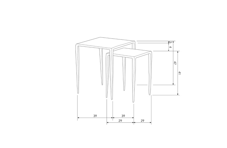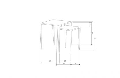– Beistelltisch-Set mit schlankem und luftigem Design – Geformt aus Metall mit einer Zink-Pulverbeschichtung – Auffallend geringes Gewicht – H 47 cm x B 39 cm x T 39 cm / H 41 cm x B 29 cm x T 29 cm Die beiden Beistelltische Punk aus der Kollektion der niederländischen Einrichtungsmarke BePureHome sind ein auffälliges Paar mit einem klaren Look. Das zinkfarbene Metall hat ein schlankes Design und wirkt auf seinen hohen, schmalen Beinen luftig. Material Das Metall in unseren Kollektionen hat verschiedene Oberflächen, wie z.B. Pulverbeschichtung und Messing/Antikmessing. Eine Pulverbeschichtung sorgt für ein luxuriöses, mattes Aussehen und schützt das Metall für die gesamte Lebensdauer. Eine Pulverbeschichtung ist ein Lack, der durch hohe Temperaturen mit dem Metall verbunden wird. Abmessungen Die hohe Version ist 47 cm hoch und 39 cm breit, die niedrige Version ist 41 cm hoch und 29×29 cm breit. Die Tischplatten haben eine 1,5 cm gewölbte Kante, die Platte ist einen Millimeter dick. Die Beine sind oben 2×2 cm lang und verjüngen sich zum Boden hin auf ø1 cm. Wartung Alle Metalle in unserer Sammlung wurden gründlich behandelt und müssen nicht nachbehandelt werden. Sollte das Metall beschädigt sein, wenden Sie sich bitte an eine spezialisierte Lackiererei. Behandeltes Metall lässt sich mit einem leicht angefeuchteten Tuch und einem milden Reinigungsmittel leicht reinigen; das anschließende Trocknen der Oberfläche sorgt für ein streifenfreies Ergebnis. Lieferung Der Artikel wird komplett montiert geliefert. Um harte Böden zu schützen, legen Sie Filzgleiter an die Unterseite des Rahmens.