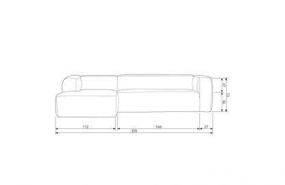 – Stabiles Ecksofa – Gepolstert mit einem grob gerippten Stoff 100% Polyester – Grobes und voluminöses Design – H 73 cm x B 305 cm x T 96/175 cm Die Sofakollektion Bean stammt vom niederländischen Einrichtungslabel WOOOD und bietet mit ihrem robusten Design eine solide Basis für Ihre Sitzecke. Der Bean ist bekannt für seine schlichten Linien, die großzügigen Stoffoptionen und den hohen Sitzkomfort. Die niedrigen Beine und die rundum gepolsterte Qualität sorgen dafür, dass der Artikel Bean klobig, aber ruhig wirkt. Die vielen Varianten lassen sich endlos kombinieren, Go Big with Bean! Material Der Rahmen der Bean besteht aus FSC-zertifiziertem Holz, wie z. B. Spanplatten, Buchenholz, Kiefernholz und Sperrholz. Das Sitzkissen hat eine Füllung aus Schaumstoff T37, einem normalen Schaumstoff mit langer Lebensdauer, und HR30, einem Schaumstoff mit hoher Elastizität und dynamischer Formbeständigkeit, der hohen Benutzerkomfort gewährleistet. Der Schaumstoff hat eine hohe Luftdurchlässigkeit und kehrt schnell in seine ursprüngliche Form zurück. Das Rückenkissen ist mit demselben Schaumstoff gefüllt und sorgt für einen bequemen Sitz. Suchen Sie nach sichtbarem und spürbarem Komfort? Dann ist dieser wunderbar weiche Grobstrickstoff genau das Richtige für Sie. Unser Split Rib-Gewebe ist ein gewebter Polyesterstoff mit einer hochflorigen Rippenstruktur. Die Rückseite des Stoffes ist mit einer dicht gewebten Unterlage verstärkt. Split wurde mit einem Martindale-Wert von 40.000 getestet, was sicherstellt, dass der Stoff sehr langlebig ist. Abmessungen – Höhe: 73 cm – Breite: 305 cm – Tiefe: 96/175 cm – Sitzhöhe: 45 cm – Sitzbreite gesamt: 241 cm – Sitzbreite Chaiselongue: 112 cm – Sitztiefe: 69 cm – Sitztiefe Chaiselongue: 145 cm – Höhe der Armlehne: 29 / 73 cm – Breite der Armlehne: 32 cm – Höhe der Rückenlehne: 29 / 73 cm – Höhe der Füße: 2 cm – Gewicht: 137 kg – Maximale Belastung: 100 kg pro Sitz Wartung Bei Flecken legen Sie ein feuchtes Handtuch auf den Fleck, damit das Handtuch den Fleck aufnimmt. Wenn das Handtuch gesättigt ist, wiederholen Sie den Vorgang, bis der Fleck nicht mehr blutet. Lassen Sie das letzte Handtuch auf dem Fleck liegen, bis das Handtuch getrocknet ist. Hinweis: Durch die Reibung zieht der Fleck in das Sofa ein. Vom Reiben wird daher dringend abgeraten. Der Split-Rib-Stoff wurde mit Teflon Fabric Protector behandelt. Diese Behandlung bildet einen Schutz um jede Faser und macht das Gewebe widerstandsfähig gegen Spritzer, Schmutz und Staub. Eine Imprägnierung ist aus diesem Grund nicht mehr notwendig. Lieferung Dieses Ecksofa wird in zwei Paketen geliefert. Die Elemente sind mit Hilfe von Klammern leicht miteinander zu verbinden. Bei harten Böden sollten Sie Filzgleiter unter die Beine legen. Dadurch werden Schäden am Boden vermieden.