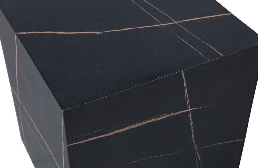 Robuster Beistelltisch mit luxuriösem Touch Schwarzes MDF-Holz mit Marmordruck Erhältlich in zwei Größen H 45 x B 40 x T 40 cm Dieser robuste Beistelltisch Benji stammt aus der Kollektion der niederländischen Marke WOOOD. Mit seiner quadratischen Form ist der Benji sehr flexibel im Einsatz, die sechs Seiten sind alle geschlossen. Benji ist innen hohl, wodurch das Gewicht auf 10 kg begrenzt ist. Der Beistelltisch Benji ist 45 cm hoch, 40 cm breit und 40 cm tief. Um harte Böden zu schützen, legen Sie Filzgleiter unter den Tisch, dies verhindert Kratzer. Der Beistelltisch Benji ist auch in einer größeren Version von 60×60 cm erhältlich, ein schönes Duo zum Kombinieren! Benji ist mit einem trockenen, weichen Tuch leicht zu reinigen.