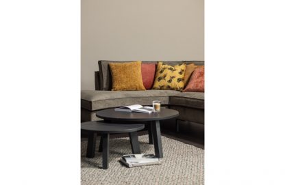 – Robuster und stabiler Beistelltisch – Hergestellt aus massiver skandinavischer Kiefer FSC – Teil der Benson-Serie – H 33 x ø 60 cm Dieser Beistelltisch ist Teil der Benson-Möbelserie aus der Kollektion der niederländischen Marke WOOOD. Die Benson-Serie ist bekannt für ihr robustes, widerstandsfähiges Aussehen aus mattschwarzem Holz. Material Die gesamte Serie besteht aus einer Kombination aus massiver skandinavischer Kiefer FSC, lackierter HDF und Melaminspanplatten. Die Kiefernmöbel in unseren Kollektionen sind FSC-zertifiziert und werden auf verschiedene Weise behandelt. Die Benson-Serie aus gebürstetem Kiefernholz ist für ihre charakteristische Maserung und ihr verwittertes Aussehen bekannt. Kiefernholz zeichnet sich durch eine hellgelbe Farbe und sichtbare Flammenspuren aus. Durch die mattschwarze Oberfläche sind die Maserungen noch leicht zu erkennen. Abmessungen Der Beistelltisch hat eine Höhe von 33 cm, die Platte hat einen Durchmesser von 60 cm. Der Benson Beistelltisch wiegt 4,7 KG. Der Beistelltisch Benson ist auch in einer größeren Version mit einem ø von 80 cm erhältlich. Wartung Unbehandeltes Kiefernholz hat eine relativ kurze Lebensdauer, im Durchschnitt 5-10 Jahre. Aus diesem Grund behandeln wir unsere Kiefernholzmöbel, um ihre Lebensdauer deutlich zu verlängern. Behandeltes Kiefernholz ist mit einem leicht feuchten Tuch leicht zu reinigen. Um Ringe und Flecken im Holz zu vermeiden, ist es ratsam, feuchte Stellen sofort zu trocknen. Lieferung Der Beistelltisch Benson wird in einem Paket geliefert und ist mit Hilfe der beiliegenden Montageanleitung leicht zu montieren. Um harte Böden zu schützen, legen Sie Filzgleiter unter die Beine.