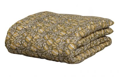 – Steppdecke mit romantischem Muster – Eine schwere Qualitätsdecke aus 100% natürlicher Baumwolle – Teil der Comforting Spices Kollektion – H 265 cm x B 220 cm Die Comforting Spices-Kollektion der niederländischen Einrichtungsmarke BePureHome besteht aus einer großen Auswahl an dekorativen Kissen, Steppdecken und Tischtüchern. Der Name der Kollektion deutet bereits auf die besondere Färbetechnik dieser Artikel hin. In Anlehnung an eine alte indische Mustertechnik werden die Artikel mit natürlichen Pigmenten wie Kräutern und Gewürzen wie Kurkuma eingefärbt. Material Die Steppdecke mit der außergewöhnlich schweren Qualität ist aus 100% Baumwolle gefertigt. Die Baumwollsteppdecken unserer Kollektionen haben eine sichtbar hohe Qualität. Die pflanzlichen Fasern werden zu einem schweren Stoff verwoben, der sich großzügig drapieren lässt. Die natürliche Baumwollfaser ist von Natur aus sehr fest und strapazierfähig. Das Färben der Baumwollfasern bzw. -fäden erfolgt mit großer Sorgfalt und erfordert daher einen vorsichtigen Umgang, vermeiden Sie daher grobe Reibung und direkte Sonneneinstrahlung. Abmessungen – Höhe: 265 cm – Breite: 220 cm – Dicke: +/- 1 cm Pflege Sie können die Bettdecke bei 30 Grad waschen und an der Luft trocknen lassen, sollten aber direkte Sonneneinstrahlung vermeiden. Bei einer dunklen Steppdecke empfiehlt es sich, sie die ersten Male separat zu waschen, da der Stoff noch Farbe abgeben kann. Verwenden Sie beim Waschen ein Feinwaschmittel, da der Stoff sonst verhärten und sich weniger angenehm anfühlen kann. Lieferung Der Artikel wird pro Stück geliefert. Der Artikel ist vakuumverpackt, nach dem Auspacken hat der Artikel innerhalb weniger Stunden wieder seine ursprüngliche Größe. Verwenden Sie beim Auspacken keine scharfen Gegenstände, die den Artikel beschädigen könnten.