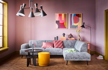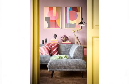 Bequemes Ecksofa auf hohen Beinen Gepolstert mit einem luxuriösen strukturierten Samtstoff Mit festem Sitzkomfort H 76 cm x B 278 cm x T 210 cm Das Ecksofa Brush aus der Kollektion der niederländischen Marke vtwonen ist mit einem kräftigen, strukturierten Samt in einem dunklen Schiefergrau gepolstert 100% Polyester, Martindale 60.000. Das Gestell besteht aus Massivholz, Spanplatten, Hartfaserplatten, Sperrholz, normalem Schaumstoff, Zickzackfedern, Kunststoff-Zwischenpolsterung 250 g/m2 und Textil. Die Rückenlehne ist mit HR-Schaum 30/20 kg/m3, synthetischer Polsterung 250 g/m2 und Textil gefüllt. Der Sitz ist mit HR-Schaum 30/30 kg/m3, synthetischer Polsterung 250 g/m2 und Textil gefüllt. Das Ecksofa Brush hat eine Sitzhöhe von 47 cm und eine Sitztiefe von 60 cm. Die Armlehnen sind 60 cm hoch und 75 cm tief. Die Beine aus massivem Birkenholz sind dunkelbraun lackiert und haben eine Höhe von 18 cm. Das Ecksofa wiegt 93 kg. Bei Flecken tupfen, nicht wischen. Verwenden Sie eine milde Seife ohne aggressive Zusätze. Die Serie Brush ist in verschiedenen Stoffen, Farbvarianten und Anordnungen erhältlich. Das Ecksofa wird in zwei Paketen mit einer einfachen Montageanleitung geliefert. Um harte Böden zu schützen, legen Sie Filzgleiter unter die Beine.