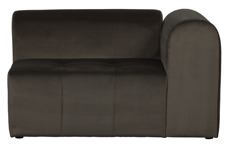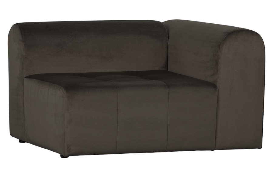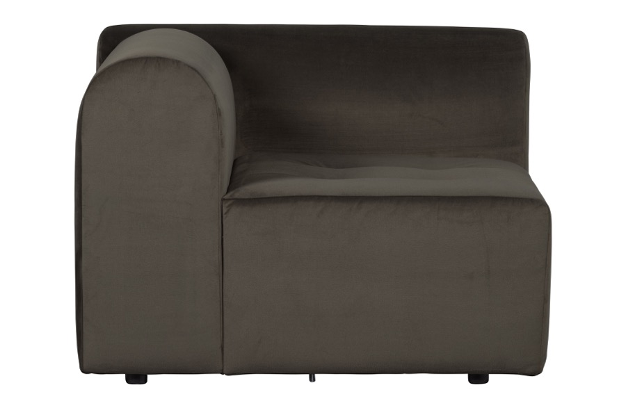 Robustes 1-Sitzer-Element mit Armlehne rechts Vielseitiges Elementarsofa In drei samtig weichen Varianten H 73 cm x B 120 cm x T 100 cm Das niederländische Interior-Label BePureHome hat seine Kollektion um ein einzigartiges Sofa ergänzt. Das Sofa Caleidoscoop besteht aus ausdrucksstarken Sitzelementen und ist für jede Einrichtung geeignet. Die Elemente sind in drei weichen Samtvarianten 100% Polyester erhältlich: Samt Martindale: 100.000, bedruckter Samt Martindale: 100.000 und Struktursamt Martindale: 85.000. Da die Elemente an den fünf Sichtseiten gepolstert sind, können sie problemlos freistehend oder in beliebiger Anordnung platziert werden. Alle Caleidoscoop-Samtstoffe sind sorgfältig aus einer warmen BePureHome-Farbkollektion ausgewählt und eignen sich perfekt für eine schöne Mix-and-Match-Komposition. Dieses robuste 1-Sitzer-Element hat auf der rechten Seite, von vorne gesehen, eine abgerundete Armlehne. Dieses Element hat eine Höhe von 73 cm, eine Breite von 120 cm und eine Tiefe von 100 cm. Die Sitzhöhe aller Caleidoscoop-Elemente beträgt 43 cm. Die Sitzbreite dieses Elements beträgt 90 cm und hat eine Sitztiefe von 70 cm, perfekt für ein entspanntes Sitzen. Die Rücken- und Armlehnen sind 73 cm hoch, gemessen vom Boden, 30 cm vom Sitz. Die Armlehnen sind 30 cm dick und sehr bequem. Die Beine haben eine runde Form mit einem Durchmesser von 4 cm und einer Höhe von 3 cm. Die Beine werden 7 cm von vorne oder hinten und 12 cm von der Seite platziert. Um harte Böden zu schützen, legen Sie Filzgleiter unter die Beine ø4 cm. Die Elemente lassen sich mit den Kunststoff-Krokodilklemmen leicht verbinden. Verwenden Sie für die wöchentliche Pflege eine spezielle Möbelbürste und bürsten Sie vorsichtig mit der Maserung. Eine Imprägnierung des Sofas ist nicht erforderlich.