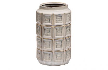 – Großzügige, grün gefärbte Vase – Hergestellt aus farbiger Keramik – Erhältlich in zwei Varianten – H 32 cm x B 19 cm x T 19 cm Die Vase Contain aus der Kollektion BePureHome ist zylindrisch und hat ein ansprechendes Fächermuster. Die Vase ist vollständig wasserdicht und daher für die schönsten, frischen Blumen bestens geeignet. Der graugrüne Farbton unterstreicht den Grünton des Straußes. So können Sie die schönsten Blumendekorationen kreieren. Material Keramik wird aus geformtem, gebranntem Ton hergestellt. Die Keramikartikel unserer Kollektionen sind mit einer matten oder glänzenden Schicht glasiert, die ihnen ein markantes Aussehen und einen zusätzlichen Schutz des Materials verleiht. Unsere Keramikartikel sind für den Innen- und Außenbereich geeignet, halten aber starkem Regen und Frost nicht stand. Keramik ist extrem hitzebeständig, kann aber bei grober Behandlung ziemlich porös werden, weshalb eine sorgfältige Pflege empfohlen wird. Abmessungen – Höhe: 32 cm – Ø: 19 cm – Öffnung ø: 12,5 cm – Fassungsvermögen: 31 cm – Muster HxBxT: 6,5×5,5×0,1 cm Wartung Keramikartikel sind mit lauwarmem Seifenwasser und einem weichen Tuch leicht zu reinigen. Das anschließende Trocknen der Oberfläche sorgt für ein streifenfreies Ergebnis. Ist die Keramik beschädigt? Sie können Kratzer mit einer keramischen Reparaturflüssigkeit ausbessern, aber das Ergebnis ist nicht unsichtbar. Lieferung Der Artikel wird in einem Paket geliefert, bei einer Mindestbestellmenge von zwei Stück. Legen Sie Filzgleiter auf die Unterseite des Gegenstandes, um eine Beschädigung der Oberfläche zu vermeiden.
