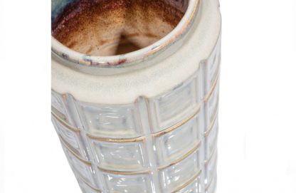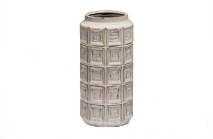 – Großzügige, grün gefärbte Vase – Hergestellt aus farbigem Kermaiek – Erhältlich in zwei Varianten – H 39 cm x B 18 cm x T 18 cm Die Vase Contain aus der Kollektion BePureHome ist zylindrisch und hat ein ansprechendes Fächermuster. Die Vase ist vollkommen wasserdicht und daher für die schönsten, frischen Blumen bestens geeignet. Der graugrüne Farbton unterstreicht den Grünton des Straußes. So können Sie die schönsten Blumendekorationen kreieren. Material Keramik wird aus geformtem, gebranntem Ton hergestellt. Die Keramikartikel unserer Kollektionen sind mit einer matten oder glänzenden Schicht glasiert, die ihnen ein markantes Aussehen und einen zusätzlichen Schutz des Materials verleiht. Unsere Keramikartikel sind für den Innen- und Außenbereich geeignet, halten aber starkem Regen und Frost nicht stand. Keramik ist extrem hitzebeständig, kann aber bei grober Behandlung ziemlich porös werden, weshalb eine sorgfältige Pflege empfohlen wird. Abmessungen – Höhe: 39 cm – Ø: 18 cm – Öffnung ø: 12,5 cm – Fassungsvermögen: 38 cm – Muster HxBxT: 6,5×5,5×0,1 cm Wartung Keramikartikel lassen sich mit lauwarmer Seifenlauge und einem weichen Tuch leicht reinigen. Das anschließende Trocknen der Oberfläche sorgt für ein streifenfreies Ergebnis. Ist die Keramik beschädigt? Sie können Kratzer mit einer keramischen Reparaturflüssigkeit ausbessern, aber das Ergebnis ist nicht unsichtbar. Lieferung Der Artikel wird in einem Paket geliefert, bei einer Mindestbestellmenge von zwei Stück. Legen Sie Filzgleiter auf die Unterseite des Gegenstands, um eine Beschädigung der Oberfläche zu vermeiden.
