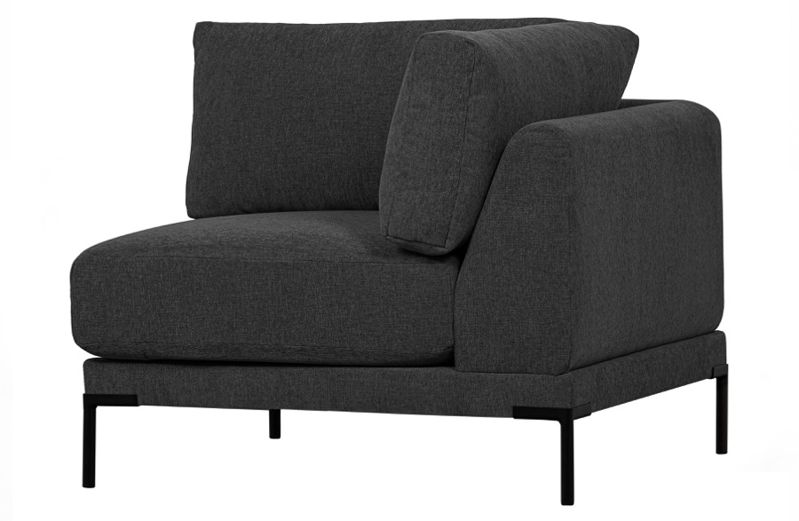 – Teil der vtwonen Couple Serie – Luftiges Design durch das hohe, stilvolle Bein – Gepolstert mit einem gewebten Melange-Stoff 100% Polyester – H 89 cm x B 100 cm x T 100 cm Erweitern, verschieben und neu anordnen. Mit der Couple-Element-Serie von vtwonen schaffen Sie das Nonplusultra der flexiblen Sitzgelegenheiten. Das stilvolle Design wird durch den hohen, schwarzen Fuß in Zylinderform unterstrichen. Die bequemen Kissen sind mit einem gewebten Melange-Stoff bezogen, der sich dank der eingewebten Chenille besonders weich anfühlt. Wählen Sie eine der sechs zeitlosen Farben oder entscheiden Sie sich für eine Kombination der Erdtöne, um einen extravaganten Sitzbereich zu schaffen. Platz, Paar, fertig! Material Die Serie Couple ist mit einer gewebten Chenille bezogen. Unser Gobi-Gewebe fühlt sich sehr weich an und besticht durch seine subtilen Farbnuancen. Dieser flachgewebte Stoff mit Chenille-Faden besteht aus 100 % Polyester und hat ein gleichmäßiges, kompaktes Bindungsmuster. Das Gobi-Gewebe ist mit einer Martindale von 100.000 für eine sehr intensive Nutzung im Wohnbereich geeignet, ideal für Haushalte mit Kindern und/oder Haustieren. Abmessungen – Höhe: 89 cm – Breite: 100 cm – Tiefe: 100 cm – Sitzhöhe: 44 cm – Sitzbreite: 57 cm – Sitztiefe: 57 cm – Breite der Armlehne: 24 cm – Beinhöhe: 13 cm – Schenkeldicke: Ø 2,5 cm – Tragfähigkeit: 90 kg – Gewicht: 47 kg Wartung Der gewebte Stoff ist pflegeleicht, Flecken lassen sich mit einem leicht feuchten Tuch und einem neutralen Waschmittel leicht entfernen. Wenn der Stoff von den Möbeln entfernt werden kann, kann er bei 30 Grad gewaschen werden. Es wird empfohlen, die Bezüge möglichst von innen nach außen in der Waschmaschine zu waschen. In der Regel raten wir davon ab, unsere Polstermöbel zu imprägnieren. Sollten Sie dies dennoch tun wollen, testen Sie das Imprägniermittel bitte vorher an einer unsichtbaren Stelle des Stoffes. Lieferung Die Couple-Elemente werden einzeln geliefert. Die Elemente lassen sich mit den bereits montierten Krokodilklemmen leicht anschließen. Um harte Böden zu schützen, legen Sie Filzgleiter auf die Unterseite der Beine.