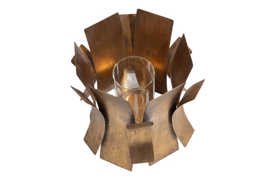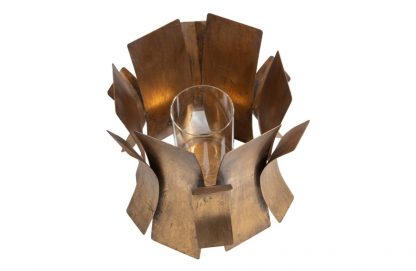 – Windlicht mit auffälligem Design – Hergestellt aus Metall mit einer Beschichtung aus antikem Messing – Teil der Kursreihe – H 27 cm x Ø 27 cm Organisches Design, eingebettet in ein Farbbad in Antikgold. Die Course-Serie sieht nicht nur sehr luxuriös aus, auch die Lichtverteilung dieser Lampenkollektion ist ein echter Hingucker. Diese auffälligen Lampen stammen aus der Kollektion der niederländischen Einrichtungsmarke BePureHome. Spielerisch geformte Metallstreifen, die das Licht mehrfach reflektieren, sind Sie bereit für ein wenig Magie im Dunkeln? Material Das Metall in unseren Kollektionen hat verschiedene Oberflächen, wie z.B. Pulverbeschichtung und Messing/Antikmessing. Die Antikmessing-Ausführungen in unseren Kollektionen werden mit einer Mischung aus Kupfer und Zink auf das Metall aufgetragen, das dann gebürstet, matt oder glänzend sein kann. Antikes Messing verleiht den Möbeln ein verwittertes, goldenes Aussehen. Abmessungen Der Kurs hat eine Höhe von 27 cm und einen Umfang von 27 cm. Auf der Innenseite des Windlichts befindet sich ein durchsichtiges Glas, um die Kerze vor dem Wind zu schützen, es steht auf einem Metallplateau 7 cm über dem Boden. Das Glas ist 13 cm hoch und hat einen Umfang von 8,5 cm; der Boden des Glases ist offen. Wartung Alle Metalle in unserer Sammlung wurden gründlich behandelt und müssen nicht nachbehandelt werden. Sollte das Metall beschädigt sein, wenden Sie sich bitte an eine spezialisierte Lackiererei. Behandeltes Metall lässt sich mit einem leicht angefeuchteten Tuch und einem milden Reinigungsmittel leicht reinigen: das anschließende Trocknen der Oberfläche sorgt für ein streifenfreies Ergebnis. Lieferung Der Artikel wird pro Stück geliefert, bei einer Mindestbestellmenge von zwei Stück.