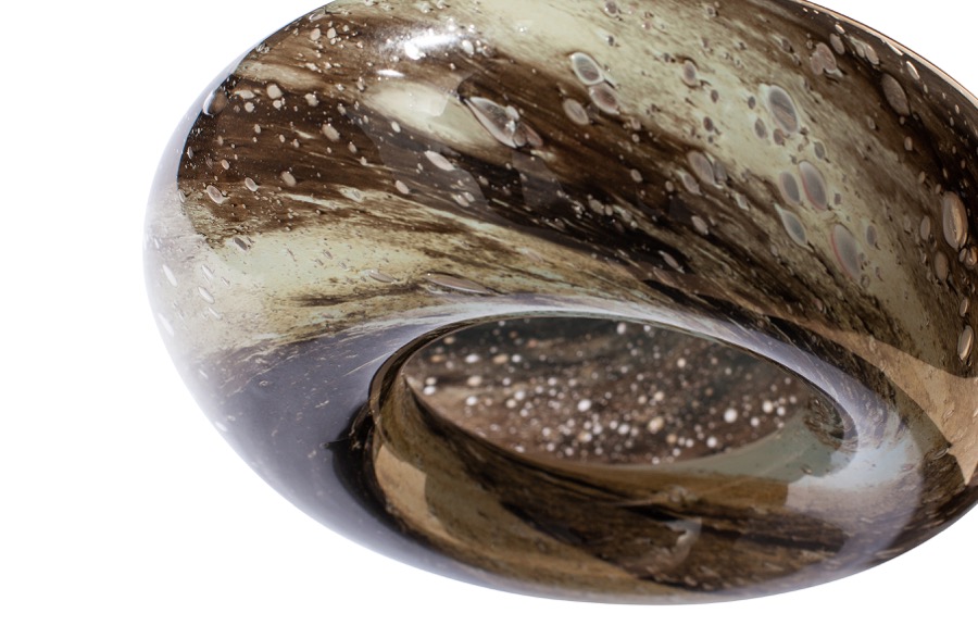 Elegante, Retro-Pendelleuchte Mehrfarbige Glashaube mit bronzenen Metallakzenten E27-Armatur max. 40 Watt H 19 x Ø 23 cm Dieser elegante Cup mit Retro-Anhänger stammt aus der Kollektion der niederländischen Marke BePureHome. Cup ist aus Glas mit einer mehrfarbigen Oberfläche und mit bronzenen Metallakzenten versehen. Diese bronzenen Akzente unterstreichen die nostalgische Atmosphäre. Cup verbreitet ein weiches und diffuses Licht. Diese Cup-Hängeleuchte eignet sich für eine große Armatur E27 max. 40 Watt, wird ohne Leuchtmittel geliefert und ist mit einem 1,55 Meter langen schwarzen Kunststoffkabel ausgestattet. Die Lampe ist für den Anschluss an einen Dimmer geeignet. Die Öffnung an der Unterseite der Ellipse hat einen Durchmesser von 11 cm.