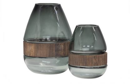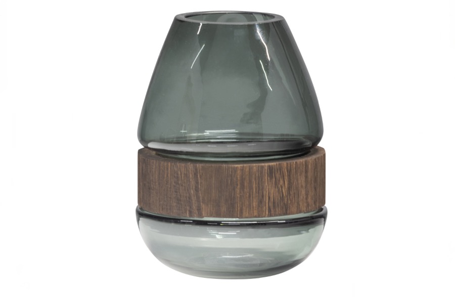 – Stilvolle Vase mit Holzdetails – Hergestellt aus geblasenem Glas – Blau/grün gefärbt – H 19 cm x Ø +/- 15 cm Verleihen Sie Ihren Lieblingsblumen eine zusätzliche Dimension mit dieser Vase mit Holzdetails. Die Vase Dave stammt aus der Exclusive-Kollektion der niederländischen Einrichtungsmarke WOOOD und ist ein stilvoller Gegenstand mit einer harten Kante. Die blaugrüne Farbe des mundgeblasenen Glases hat einen stimmungsvollen, warmen Unterton und lässt sich gut mit der warmtonigen Holzkante kombinieren. Material Die Glaswaren in unseren Kollektionen werden auf verschiedene Weise geformt: mundgeblasen oder maschinell hergestellt. Die handwerkliche Glasbearbeitung sorgt dafür, dass jedes Stück ein Unikat ist und leichte Unebenheiten in den Kollektionen auftreten können. Die Einfärbung von transparentem Glas erfolgt in einem frühen Stadium des Prozesses, eine undurchsichtige Einfärbung des Glases wird vorgenommen, nachdem der Glasartikel vollständig geformt und abgekühlt ist. Für unsere Färbetechniken werden stets organische Farbstoffe verwendet. Abmessungen – Höhe: 19 cm – Durchmesser: Ø 15 cm – Glasdicke: 1 cm – Öffnung: Ø 6,5 cm – Volumen: 18 cm – Fuß: Ø 7 cm – Rand aus Holz: H 4 cm – Wasserdicht: ja Wartung Die Gläser lassen sich mit einem sauberen, trockenen Tuch leicht staubfrei halten. Eventuelle Flecken lassen sich leicht mit einem leicht feuchten, sauberen Tuch entfernen. Die Nachtrocknung sorgt für ein streifenfreies Ergebnis. Seien Sie beim Umgang mit Glaswaren sehr vorsichtig, denn Glaswaren sind immer leicht zerbrechlich. Lieferung Der Artikel wird in vier Teilen geliefert. Um die Oberfläche zu schützen, legen Sie kleine Filzgleiter auf die Unterseite des Artikels.