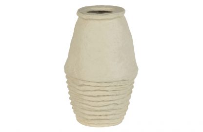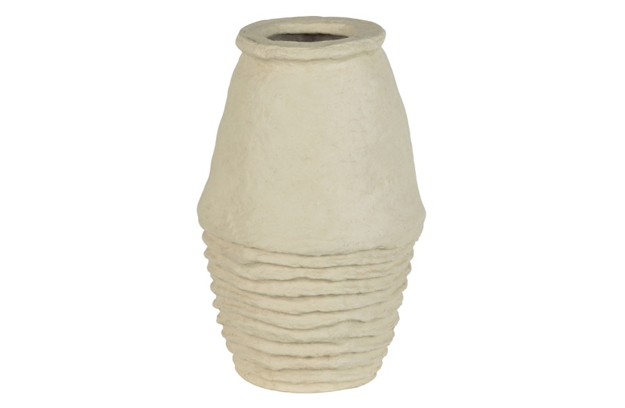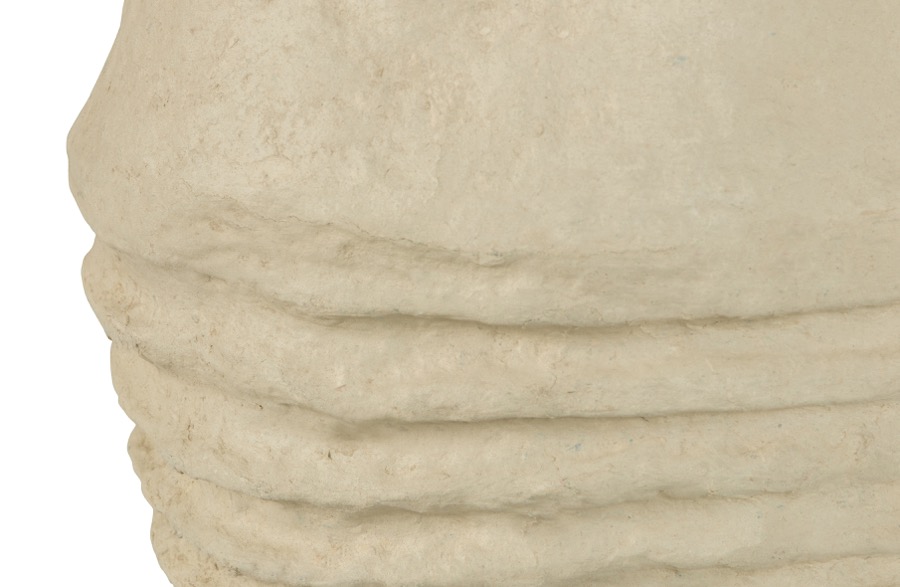 – Handgefertigte Vase – Geeignet für einen schönen Trockenblumenstrauß – Hergestellt aus Pappmaché – H 45 cm x Ø 30 cm Jeder Artikel aus unserer Pappmaché-Serie ist ein Unikat. Einzigartig in Größe, Ausführung und Textur. Denn die Pappmaché-Artikel aus der Kollektion der niederländischen Marke BePureHome werden vollständig von Hand gefertigt. Um lange Freude an unseren Pappmaché-Artikeln zu haben, sollten Sie sie vor Feuchtigkeit und Hitze schützen. Material Pappmaché ist eine Kunstform, die auf Papier und Leim basiert. Die Pappmaché-Artikel aus unseren Kollektionen bestehen zu 100 % aus recyceltem Karton und Papier und haben einen hellbraunen Untergrund. Die Pappmaché-Artikel können mit einem natürlichen Pigment weiß oder in einem dunkleren Grau-/Braunton gefärbt werden. Abmessungen Die Vase Delos hat eine Höhe von 45 cm und ist an ihrer breitesten Stelle 30 cm rund. Die Öffnung an der Oberseite hat einen Durchmesser von 18 cm und einen 4 cm dicken Rand. Der Raum ist 44 cm tief. Wartung Alle Artikel sind handgefertigt, daher können die Accessoires in Größe, Proportion und Ausführung von der Produktfotografie und dem Artikel im Shop abweichen. Die Pappmaché-Artikel sind nicht wasser- und hitzebeständig, es wird empfohlen, die Artikel nur zur Dekoration zu verwenden. Mit einem sauberen, trockenen Tuch können Sie die Gegenstände leicht staubfrei halten. Vermeiden Sie Feuchtigkeit und Reinigungsmittel, da diese das Produkt verformen können. Lieferung Die Vase wird pro Stück geliefert. Um den Artikel und die Oberfläche zu schützen, legen Sie bitte Filzgleiter auf den Boden, dies verhindert Kratzer.