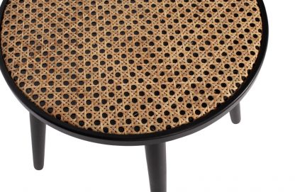 Stabiler, moderner Beistelltisch. Tischplatte aus MDF mit Innenleben aus natürlichem Rattan und Beinen aus schwarzer Kiefer. Bringt Atmosphäre in den Innenraum. H 44 x ø 39 cm Dieser Beistelltisch Ditmer aus der Kollektion der niederländischen Marke WOOOD ist ein moderner, robuster Beistelltisch mit einem natürlichen Look dank der Verwendung einer Rattanplatte in einem natürlichen Ton. Der Tisch ist aus einer MDF-Holzplatte gefertigt. Die Innenseite des Tisches ist mit naturfarbenem Rattan verkleidet. Die Tischbeine sind aus schwarzem Kiefernholz gefertigt. Der Beistelltisch Ditmer hat eine Höhe von 44 cm und einen Durchmesser von 39 cm. Der Ditmer-Tisch hat ein maximales Gewicht von 20 Kilo. Legen Sie Filzgleiter unter die Beine. Dies verhindert Schäden an harten Böden. Der Artikel wird als einfacher Bausatz mit übersichtlicher Montageanleitung geliefert.