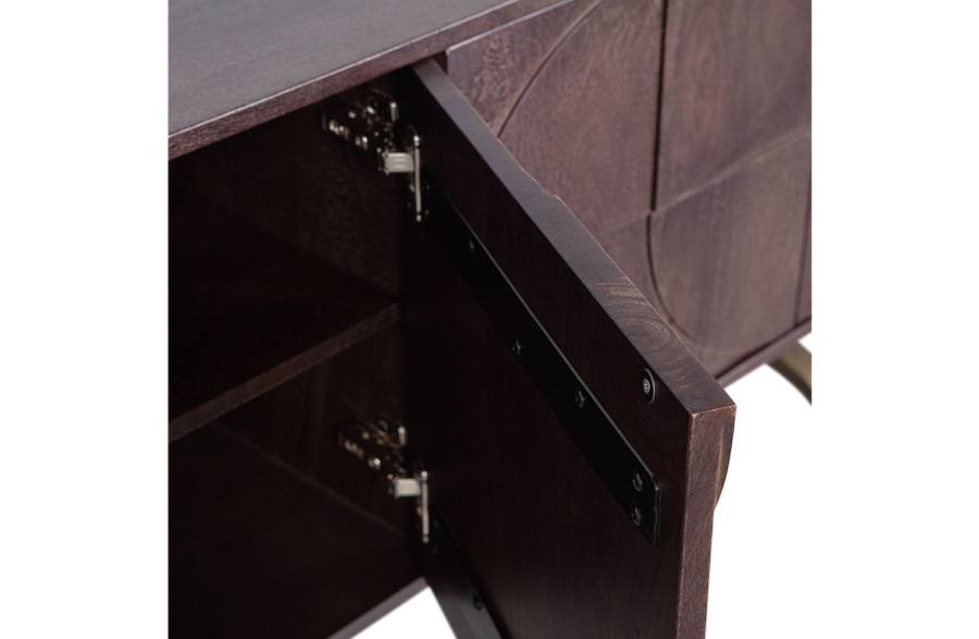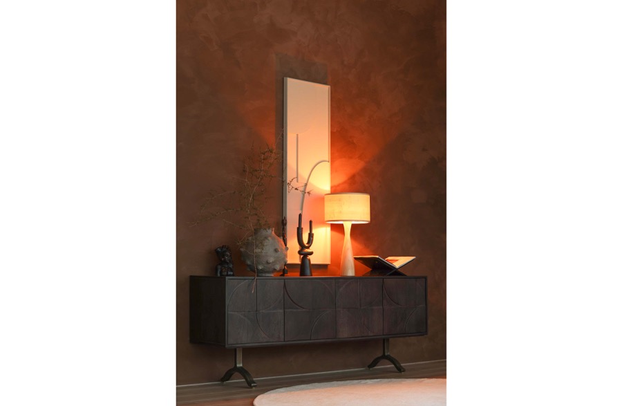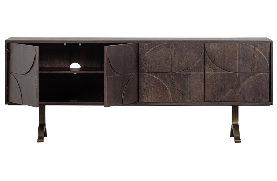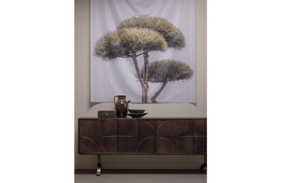 – Charakteristisches Sideboard – Mit zwei Kabellöchern auf der Rückseite – Hergestellt aus Mangoholz mit Walnuss-Finish – H 70 cm x B 180 cm x T 40 cm Dieses charakteristische Sideboard ist aus der Kollektion der niederländischen Marke BePureHome. Das warme Walnuss-Finish des Mangoholzes verleiht dem Draw Sideboard sein attraktives Aussehen. Das verspielte Fußgestell verleiht dem Design Luft und sorgt für große Stabilität. Das 3D-Muster auf den Türen verleiht dem Artikel eine einzigartige Atmosphäre. WARNUNG Kippgefahr! Bei Schränken, die höher als 70 cm sind, empfehlen wir, der Wandmontage besondere Aufmerksamkeit zu widmen. Die Montage der Absturzsicherung verhindert Unfälle und das Umkippen des Schrankes. Material Mangoholz ist bekannt für seine warme goldbraune Farbe, sein nachhaltiges Wachstum und seine lange Haltbarkeit. Mangoholz zeichnet sich außerdem durch deutlich sichtbare Maserungen und Farbnuancen aus. Die Maserung, der gelbe Schimmer oder die dunklen Linien und Äste machen jeden Gegenstand aus Mangoholz einzigartig. Mangoholz ist sehr stark und gehört zu den härteren Hölzern, weshalb ein Gegenstand aus Mangoholz nicht so leicht beschädigt werden kann. Abmessungen – Höhe: 70 cm – Breite: 180 cm – Tiefe: 40 cm – Rahmen: 1,5 cm – Obere Höhe: 43 cm – 4xTür: H40 cm x B44 cm mit Magnetverschluss – 2×2 Fächer: H19,5 cm x B87 cm x T34 cm inkl. 2 Kabellöcher – Beinhöhe: 27 cm – Beinbreite: 4 cm – Beintiefe: 35 cm – Platz neben den Beinen: 21 cm – Abstand zwischen den Beinen: 130 cm – Maximale Last auf der Oberseite: 35 kg – Maximales Gewicht pro Regal: 15 kg Wartung Möbel aus Mangoholz sind leicht zu pflegen. Mit einem leicht feuchten, sauberen Tuch können Sie sie leicht staub- und fleckenfrei halten. Gegenstände aus Mangoholz sind nur für den Gebrauch in Innenräumen bestimmt. Eine zusätzliche Behandlung oder ein zusätzlicher Schutz ist mit einer transparenten Beschichtung möglich, wird aber in den ersten Jahren nicht als notwendig erachtet. Lassen Sie sich in jedem Fall von einem Lackierbetrieb beraten und informieren Sie sich über die Behandlung des Mangoholzartikels. Lieferung Der Artikel wird in einem Paket mit einer Mindestbestellmenge von einem Stück geliefert. Der Artikel lässt sich mit Hilfe der mitgelieferten Montageanleitung leicht zusammenbauen. Das Sideboard wird vormontiert geliefert, nur die Beine müssen noch montiert werden. Um harte Böden zu schützen, legen Sie Filzgleiter auf die Unterseite der Beine, dies verhindert Beschädigungen. Es ist ratsam, die Absturzsicherung mit besonderer Sorgfalt zu installieren, um Unfälle zu vermeiden.