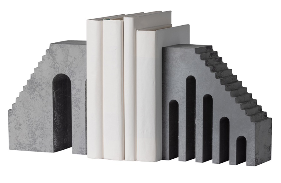 Buchständer Satz von zwei Hergestellt aus lackiertem MDF-Holz Romantisches italienisches Treppendesign H 18 cm x B 15 cm x T 7 cm / H 18 cm x B 16 cm x T 7 cm Der Ella Buchständer sind zwei starke Halter, die an die Stufen des Kolosseums erinnern. Ella stammt aus der Kollektion der niederländischen Marke WOOOD und ist aus kompaktem MDF-Holz gefertigt. Die Oberfläche in Betonoptik ist handbemalt, so dass jedes Stück sein eigenes, einzigartiges Design hat. Die Grautöne passen zu den schönsten Bücherregalen und stilvoller Dekoration. Der Buchständer Ella mit eineinhalb Ports hat eine Höhe von 18 cm, eine Breite von 15 cm und eine Tiefe von 7 cm. Die flache Platte misst 8×7 cm BxT. Der Anschluss ist 13 cm hoch und 3,5 cm breit. Die Ella mit fünf Toren ist 18 cm hoch, 16 cm breit und 7 cm tief. Die Tore sind unterschiedlich hoch, variieren zwischen 13 und 7,5 cm, und jedes ist 1,5 cm breit. Die flache Oberseite dieses Halters misst 5,5 x 7 cm BxT.