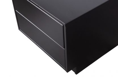 – Stilvolle Möbelserie in tiefem Schwarz – Mit modernem Push-to-Open-System – Hergestellt aus massivem Kiefernholz – H 40 cm x B 50 cm x T 40 cm Stilvoll, zeitlos und modern. Dies sind die Schlüsselwörter der Finca-Serie. Die Serie Finca stammt aus der Kollektion des niederländischen Einrichtungslabels WOOOD und ist aus natürlichem Kiefernholz gefertigt. Die Finca-Artikel sind mit einer matten, tiefschwarzen Beschichtung versehen. Die klaren Linien der Finca-Möbel werden nicht durch Griffe unterbrochen, ein modernes Push-to-Open-System ermöglicht das geräuschlose Öffnen und Schließen der Türen und Schubladen. Das TV-Möbel Finca ist mit einer Breite von 50 cm die kleinste der drei TV-Möbelvarianten. Das TV-Möbel hat eine Höhe von 40 cm und eine Tiefe von 39,5 cm. So lassen sich die drei Varianten leicht kombinieren und ein TV-Möbel in der gewünschten Größe einfach zusammenstellen. Das TV-Möbel hat zwei geräumige Schubladen mit einem Fassungsvermögen von je 11,5x43x30 cm HxBxT. Die Unterkante des Finca TV-Schrankes lässt vorne 7 cm Platz, wodurch der Eindruck entsteht, dass der TV-Schrank schwebt. Jede Schublade hat eine maximale Tragfähigkeit von 10 kg bei gleichmäßiger Gewichtsverteilung. Jedes Möbelstück aus dem Finca-Möbelprogramm wird als einfacher Bausatz mit einer klaren Montageanleitung geliefert. Das Gleiten der Möbel kann auf harten Böden Kratzer verursachen, legen Sie zum Schutz Filzgleiter auf die Unterseite.