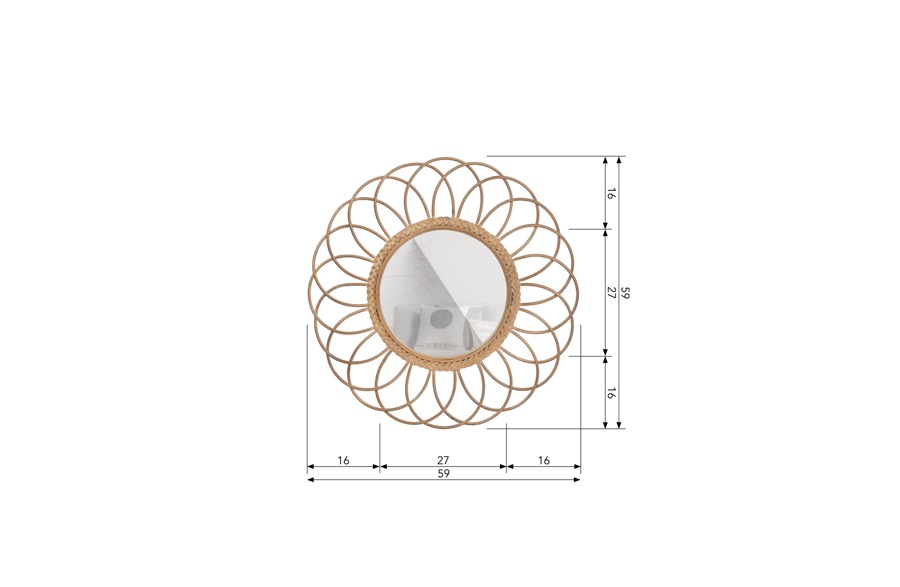 – Runder Spiegel im Bohème-Stil – Hergestellt aus natürlichem Bambus – Leicht aufzuhängen – Ø 59 cm x T 2 cm Holen Sie sich mit diesem großzügigen Spiegel eine wunderbare Boho / Strandatmosphäre in Ihr Zuhause. Der Spiegel Flores stammt aus der Kollektion des niederländischen Einrichtungslabels Basic Label und ist aus 100% natürlichem Bambus gefertigt. Material Bambus ist ein sehr starkes Naturprodukt und gleichzeitig sehr flexibel, was eine sehr hohe Haltbarkeit gewährleistet. Bambus hat eine sehr helle Farbe, kann aber stark auf die Umwelt reagieren: Durch Witterungseinflüsse wird Bambus langsam grau oder schimmelt. Dies hat keinen Einfluss auf die Konstruktion, die Qualität oder die Lebensdauer der Möbel. Abmessungen Flores hat einen runden Spiegel mit einem Durchmesser von 27 cm, umrahmt von einem dezenten Geflecht aus dünnen Bambussträngen. Auf der Rückseite des Spiegels, an der Holzkante, haben Sie die Möglichkeit, ihn aufzuhängen. Der Spiegel Flores ist leicht und eignet sich daher für jede Art von Wand. Die Gesamthöhe und -breite des Flores-Spiegels beträgt 59 cm und er ist 2 cm dick. Wartung Alle Bambusartikel werden vorbehandelt, um den Alterungsprozess zu verlangsamen. Flecken lassen sich leicht mit einem leicht feuchten Tuch entfernen, hartnäckige Ablagerungen können mit leichtem Schleifpapier abgeschliffen werden. Der Spiegel kann mit einem sauberen, feuchten Tuch gereinigt werden. Die anschließende Trocknung sorgt für ein streifenfreies Ergebnis. Lieferung Der Spiegel wird in einem Paket geliefert. Das Befestigungsmaterial ist exklusiv.