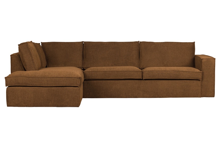 Robustes, komfortables Ecksofa Aus grobem Melange-Gewebe 90%PES 10%PAC in Bronzefarbe Verfügbar in linker und rechter Ausführung Abmessungen HxBxT: 90x283x197 cm Dieses robuste Ecksofa der niederländischen Marke WOOOD ist aus einem superstarken Melange-Gewebe 90%PES 10%PAC gefertigt. Mit einer Martindale von 50.000 ist das Freddie-Sofa sehr gut für den intensiven Hausgebrauch geeignet. Im Loungebereich verläuft eine Steppnaht quer über das breite Sitzkissen in einer Linie mit den Sitzpolstern des Sofateils. Der moderne Look von Freddie passt zu jedem Wohnstil. Mit seinem praktischen Design bietet Freddie mehr als genug Platz für die ganze Familie. Dieses Ecksofa ist auch in einer rechten Ausführung erhältlich. Die Abmessungen sind HxBxT: 90x283x197 cm die Tiefe von 197 cm ist die Tiefe der gesamten Loungefläche. Der Wohnbereich hat eine Breite von 190 cm. Das Sofa hat lose Rücken- und Sitzkissen und einen festen und hervorragenden Sitzkomfort. Die Höhe der Armlehne beträgt 58 cm, die Breite der Armlehne 20 cm, die Sitztiefe 63 cm und die Sitzhöhe 42 cm. Dieses Sofa wird in zwei Elementen geliefert. Die Elemente lassen sich mit Hilfe von Klammern einfach miteinander verbinden.