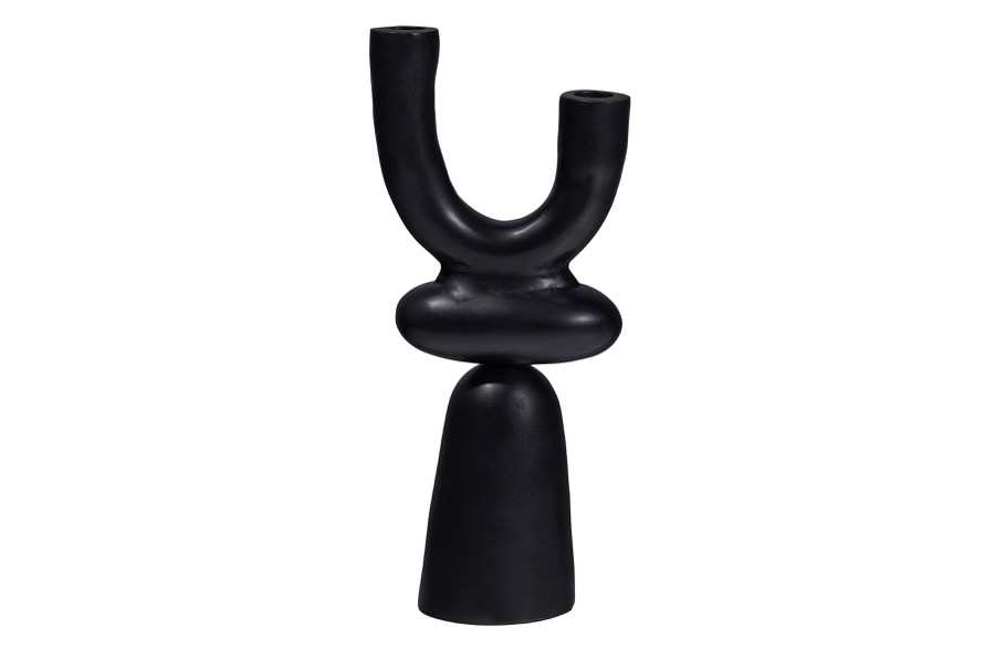 – Organisch geformtes Ornament – Hergestellt aus Metall mit mattschwarzer Oberfläche – Robuster Artikel von schwarzer Qualität – H 33 cm x B 14 cm x T 9 cm Das dekorative Fund-Ornament ist kugelförmig und kann auch als Kerzenständer verwendet werden, der Platz für zwei Tafelkerzen mit einem Durchmesser von 1,5 cm bietet. Das Metallornament mit der stilvollen mattschwarzen Beschichtung hat eine glatte Oberfläche und einen organischen Look. Fund aus der BePureHome-Kollektion ist von schwerer Qualität und fügt sich problemlos in kühle Einrichtungsstile ein. Material Das Metall in unseren Kollektionen hat verschiedene Oberflächen, wie zum Beispiel: eine Pulverbeschichtung. Eine Pulverbeschichtung sorgt für ein luxuriöses Aussehen und schützt das Metall auf Dauer. Eine Pulverbeschichtung ist eine Farbe, die bei hohen Temperaturen auf das Metall aufgetragen wird. Die Pulverbeschichtung gewährleistet eine vollständige Farbdeckung und hat eine matte oder leicht glänzende Oberfläche. Abmessungen – Höhe: 33 cm – Breite: 14 cm – Tiefe: 9 cm – Obere Höhe: 14/11 cm – 2x oben Ø: 4 cm – Optional: 2x Kerze: D: 1,5 x ø1,5 cm – Mittelstück: H 5,5 cm x B 13 x T 6 cm – Fuß: H 14,5 cm x Ø2/6 cm mit Filz Wartung Alle unsere Metalle in der Sammlung sind gründlich behandelt worden und müssen daher nicht erneut behandelt werden. Sollte das Metall beschädigt sein, wenden Sie sich bitte an eine spezialisierte Lackiererei. Behandeltes Metall lässt sich mit einem leicht feuchten Tuch und einem milden Reinigungsmittel leicht reinigen, das anschließende Trocknen der Oberfläche sorgt für ein streifenfreies Ergebnis. Lieferung Der Artikel wird in einem Paket geliefert, bei einer Mindestbestellmenge von vier Stück. Um harte Böden zu schützen, legen Sie Filzgleiter auf die Unterseite des Artikels.