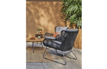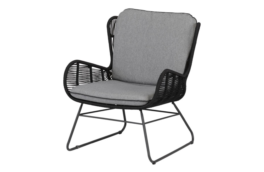 – Atmosphärischer Drahtstuhl für den Außenbereich mit Rücken- und Sitzkissen – Hergestellt aus Stahlrahmen und Drahtgitter – Auch als Gartenstuhl erhältlich – H 81 cm x B 75 cm x T 70 cm Das ist der Loungesessel Grace der niederländischen Outdoor-Marke Exotan. Die dezente, wannenförmige Sitzfläche sorgt für einen hohen Sitzkomfort auf der Veranda oder der Gartenterrasse. Perfekt für einen sonnigen Moment der Entspannung mit einem guten Buch oder guter Gesellschaft. Material Die Serie Grace von Exotan besteht aus einem Stahlrahmen mit einer mattschwarzen Beschichtung. Das Drahtgeflecht besteht aus einem für den Außenbereich geeigneten Seil in einem dunklen Anthrazitton. Das Rücken- und Sitzkissen ist im Lieferumfang enthalten und hat eine dunkelgraue Farbe. Die Füllung ist aus Standard-Schaumstoff und daher nicht resistent gegen die Nacht oder Winter, ist es empfehlenswert, die Kissen sofort nach Gebrauch zu speichern. Abmessungen Der Loungesessel hat eine Höhe von 81 cm, eine Breite von 75 cm und eine Tiefe von 70 cm. Die Sitzhöhe des Loungesessels Grace beträgt 46 cm inklusive Kissen. Die Sitzbreite von 70 cm und die Sitztiefe von 53 cm sorgen für eine sehr großzügige Sitzfläche. Die Armlehnen sind 18 cm hoch vom Sitz, die Rückenlehne 51 cm. Die Beine haben eine Höhe von 33 cm und einen Durchmesser von 2 cm. Das maximale Gewicht des Gartenstuhls Grace beträgt 100 kg. Wartung Schützen Sie die Möbel vor Regen, Nacht und Winter mit einer Plastikfolie oder Schutzhülle. Wenn möglich, ist es besser, wenn die Möbel im Haus überwintern. Entfernen Sie eventuelle Flecken mit einer neutralen Seife. Verwenden Sie keine Chemikalien oder Hochdruckreiniger. Lieferung Der Loungesessel Grace wird in einem Paket geliefert und komplett montiert.