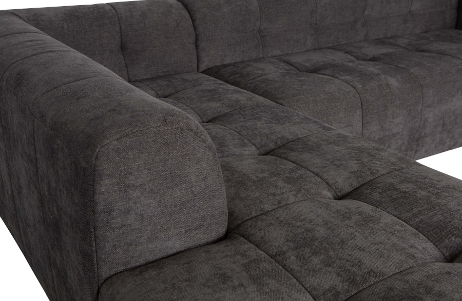 Grid Eckcouch Links Gewebter Stof Dunkel Grau