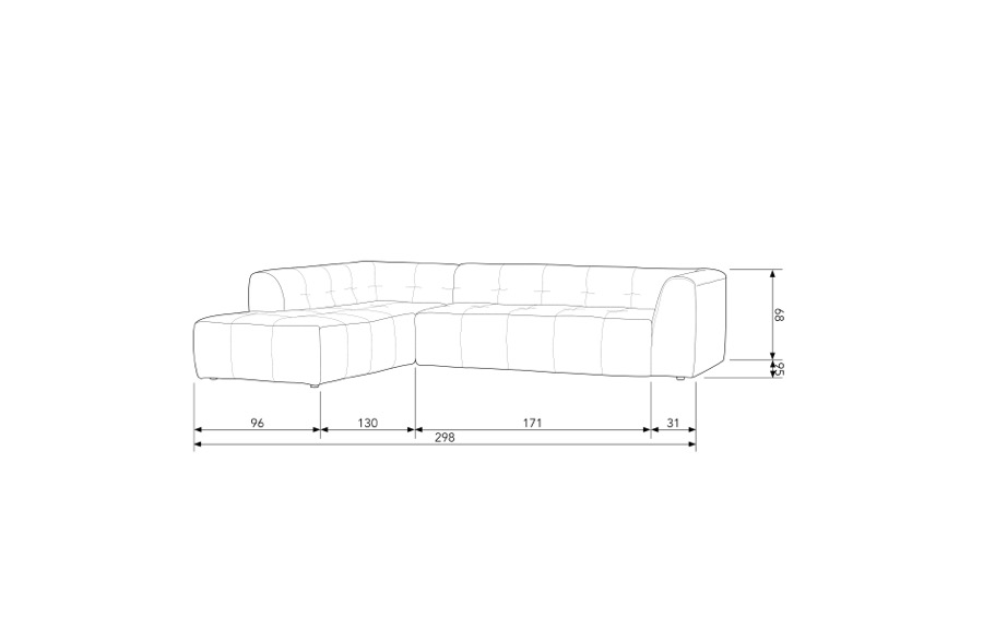 – Großzügiges, robustes Ecksofa – Elegantes, einfaches Design – Supersoftes Chenille-Gewebe 100% Polyester – H 68 cm x B 298 cm x T 95/225 cm Das Ecksofa Grid strahlt mit seinem kompakten Design großzügigen Komfort aus. Das Sofa Grid stammt aus der Kollektion der niederländischen Marke Basiclabel. Aufgrund seines stilvollen Designs bietet er mehr als genug Platz für 4-6 Personen. Das Grid ist sowohl als 3-Sitzer als auch als Ecksofa erhältlich. Material Grid ist mit unserem superweichen Stoff gepolstert: Ritini. Das Chenille-Gewebe aus 100 % Polyester hat die Weichheit von Velours und die Festigkeit von Leinen. Mit einem Martindale von 45.000 kann Grid einiges aushalten und eignet sich sehr gut für eine intensive Wohnnutzung. Das Gestell des Sofas ist aus Spanplatten, Sperrholz, Weichholz und Massivholz gefertigt. Der Sitz hat eine Zickzack-Federung und HR 3032, T3037 Schaumstoff für bequemes Sitzen. Der Rücken ist mit HR 2618, T1830 Schaumstoff gefüllt. Abmessungen Das Grid hat eine Höhe von 68 cm, eine Breite von 298 cm und eine Gesamttiefe von 225 cm, der Sofateil ist 95 cm tief. Die Sitzhöhe beträgt 39 cm und die Sitztiefe 65 cm. Die gesamte Sitzbreite des Sofas beträgt 236 cm, die des Longchairs 195 cm. An der Unterseite befinden sich die Kunststoffbodenkappen mit einer Höhe von 3 cm. Das Ecksofa Grid hat ein Gesamtgewicht von 130 kg. Wartung Das Ecksofa ist mit einer weichen Möbelbürste leicht zu reinigen. Um harte Böden zu schützen, legen Sie Filzgleiter an die Unterseite der Bodenschoner. Lieferung Das Ecksofa Grid wird in zwei Paketen geliefert und ist mit den vormontierten Metallbügeln einfach zu verbinden.