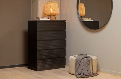 Jente Schubladenschrank 5 Laden Kiefer Tief Schwarz [fsc]
