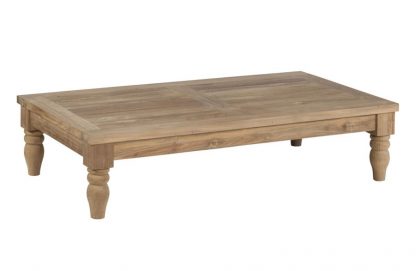 Die Kawang Lounge aus der Exotan-Kollektion hat aufgrund ihrer schönen Oberflächen einen kolonialen Look. Da diese Serie aus recyceltem Teakholz hergestellt ist, hat dieser Tisch einen Vintage-Look. Teakholz ist ein Naturprodukt, das sich verfärben und Haarrisse entwickeln kann. Dies beeinträchtigt jedoch nicht die Konstruktion des Holzes.