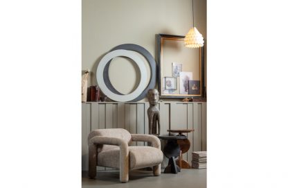 – Sessel mit einzigartigem Design – Robustes Design mit freundlichen Formen – Gepolstert mit einem matten, groben Samt – H 65 cm x B 76 cm x T 82 cm Einzigartiges Design in auffälligem Design: Sehen Sie sich den Sessel Lenny an! Dieser Designersessel stammt aus der Exclusive-Kollektion der niederländischen Einrichtungsmarke WOOOD und sieht einladend aus. Die großzügige Sitzfläche ist sehr bequem und besticht durch den matten Glanz des groben Samtes. Es ist kein Geheimnis: Lenny stiehlt Ihnen die Show in Ihrer Einrichtung! Material Lenny ist mit grobem Samt gepolstert und hat ein unregelmäßiges Flormuster. Unser grober Sissy-Samt hat eine ausgeprägte Struktur, die ihm ein luxuriöses Aussehen und einen besonderen Glanz verleiht. Der weiche Stoff besteht aus 100 % Polyester, was die Pflege sehr einfach macht. Der grob strukturierte Samt hat einen Martindale-Wert von 40.000, was ihn sehr widerstandsfähig gegen Schleifen, Verblassen und Abnutzung macht. Abmessungen – Höhe: 65 cm – Breite: 76 cm – Tiefe: 82 cm – Sitzhöhe: 43 cm – Sitzbreite: 56 cm – Sitztiefe: 48 cm – Höhe der Rückenlehne: 65/21 cm – Breite der Rückenlehne: 56 cm – Dicke der Rückenlehne: 28 cm – Höhe der Armlehne: 56/13 cm – Breite der Armlehne: ø 10 cm – Tiefe der Armlehne: 63 cm – Beinhöhe: 15 cm – Beinstärke: ø 10 cm – Abstand zwischen den Vorderbeinen: 56 cm – Abstand zwischen Vorder- und Hinterbeinen: 46 cm – Gewichtskapazität: 120 kg Wartung Kleine Flecken können leicht mit einem feuchten Tuch entfernt werden. Bei hartnäckigen Flecken empfiehlt es sich, den Stoff mit einem feuchten Tuch und einem neutralen Möbelshampoo zu betupfen. Auf dem Lieblingssitz kann nach einiger Zeit eine glänzende Sitzfläche entstehen. In der Regel raten wir davon ab, unsere Polstermöbel zu imprägnieren. Sollte dies jedoch gewünscht sein, testen Sie das Imprägniermittel bitte vorher an einer unsichtbaren Stelle des Stoffes. Lieferung Der Artikel wird in einem Paket geliefert, komplett montiert. Um harte Böden zu schützen, bringen Sie bitte Filzgleiter an der Unterseite der Beine an.