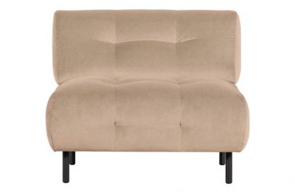 – Bequemer Sessel ohne Armlehnen – Gepolstert mit gewaschenem Samt 80% Polyester / 20% Baumwolle – Schlankes Design mit klassischen Elementen – H 75 cm x B 90 cm x T 90 cm Mit dem Blickfang Lloyd bringen Sie einen Farb- und Komfortschub in Ihr Interieur! Die Serie Lloyd stammt aus der Kollektion des niederländischen Einrichtungslabels WOOOD. Das schlichte Design des Sofas bildet eine spannende Kombination mit den klassisch anmutenden, gesteppten Rückenlehnen und Sitzflächen. Material Der Rahmen ist aus Hartholz und Sperrholz gefertigt und mit normalem Schaumstoff und Zickzackfedern bezogen. Die Rückenlehne besteht aus 30/20 kg/m3 HR-Schaum, der Sitz ist mit 35/32 kg/m3 HR-Schaum und einer 30/20 kg/m3 HR-Schaumschicht gefüllt. Lloyd ist mit unserem Samtstoff Loma gepolstert und hat ein luxuriöses Aussehen. Der Stoff hat einen feinen Griff und einen schönen, matten Glanz. Der gewaschene Samt Loma besteht zu 80 % aus Polyester und zu 20 % aus Baumwolle und hat eine volle und schwere Qualität. Das Material ist daher für eine intensive Nutzung geeignet Martindale 100.000. Der Samtstoff wird nicht so leicht kaputtgehen, ist aber lichtempfindlich, so dass es mit der Zeit zu einer Verfärbung des freiliegenden Stoffes kommen kann. Zur Überraschung vieler ist der Stoff sehr pflegeleicht. Abmessungen Der Lloyd ist 75 cm hoch, 90 cm breit und 90 cm tief. Die Sitzhöhe beträgt 45 cm, die Sitzbreite ist 90 cm und die Sitztiefe 60 cm. Die Rückenlehne hat eine Höhe von 35 cm, gemessen vom Sitz, und ist 30 cm dick, was einen hohen Komfort bietet. Die schwarzen Metallbeine haben eine Höhe von 15 cm und einen ø von 3 cm. Dies verleiht dem Stuhl ein luftiges und geräumiges Aussehen. Wartung Kleine Flecken lassen sich leicht durch Abtupfen mit einem saugfähigen Tuch entfernen. Größere Flecken lassen sich leicht mit einem milden Reinigungsmittel und einem Mikrofasertuch entfernen. Verwenden Sie gegebenenfalls einen Haartrockner, um den Fleck schneller zu trocknen. Halten Sie genügend Abstand, damit der Stoff nicht verbrennt. Anschließend kann der Stoff mit einer Samtbürste gebürstet werden. Diese Bürste ist sehr gut für die wöchentliche Pflege geeignet. Von einer Imprägnierung wird bei unseren Samt- und Teddystoffen dringend abgeraten. Grundsätzlich raten wir davon ab, unsere Polstermöbel zu imprägnieren. Sollten Sie dies dennoch tun wollen, testen Sie das Imprägniermittel bitte vorher an einer nicht sichtbaren Stelle des Stoffes. Lieferung Der Lloyd-Sessel wird in einem Paket geliefert. Um harte Böden zu schützen, legen Sie Filzgleiter ø2cm unter die Beine.