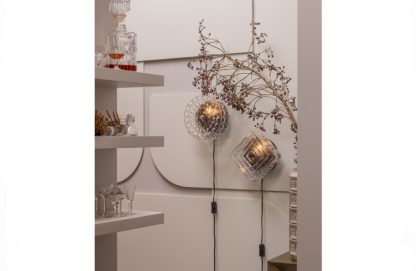 – Wandleuchte mit Retro-Design – Hergestellt aus Metall mit mattschwarzer Oberfläche – Lampenschirm mit einzigartigem, transparentem Glaskunstwerk – H 25 cm x B 25 cm x T 15 cm Die Wandleuchte Lumps aus der Kollektion von BePureHome ist ein einzigartiges Stück. Der auffällige Schirm ist aus transparenter Glaskunst gefertigt. Dieser Retro-Look passt genau zu den heutigen Einrichtungstrends. Dank des kugelförmigen Musters wird das Licht spielerisch gestreut und verleiht Ihrem Wohnbereich eine zusätzliche Dimension. Material Die Glaswaren in unseren Kollektionen werden auf unterschiedliche Weise geformt: mundgeblasen oder maschinell hergestellt. Die handwerkliche Glasbearbeitung sorgt dafür, dass jedes Stück ein Unikat ist und leichte Unebenheiten in den Kollektionen auftreten können. Die Einfärbung von transparentem Glas erfolgt in einem frühen Stadium des Prozesses, eine undurchsichtige Einfärbung des Glases wird vorgenommen, nachdem der Glasartikel vollständig geformt und abgekühlt ist. Für unsere Färbetechniken werden stets organische Farbstoffe verwendet. Abmessungen – Höhe: 25 cm – Breite: 25 cm – Tiefe: 15 cm – Wandkappe: H4 cm x Ø17 cm – Glasschirm: H25 cm x B25 cm x T11 cm – Kabel: schwarzer Kunststoff, 138 cm mit manuellem Schalter – Halterung: E27 – Spezifikationen: 250V, 40Watt – Gewicht: 1,55 kg Wartung Die Gläser lassen sich mit einem sauberen, trockenen Tuch leicht staubfrei halten. Eventuelle Flecken lassen sich leicht mit einem leicht feuchten, sauberen Tuch entfernen. Die Nachtrocknung sorgt für ein streifenfreies Ergebnis. Seien Sie beim Umgang mit den Glaswaren sehr vorsichtig, denn Glaswaren sind immer etwas zerbrechlich. Lieferung Der Artikel wird in einem Paket geliefert. Es wird empfohlen, die Montageanleitung vor der Montage sorgfältig zu lesen.