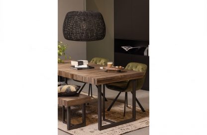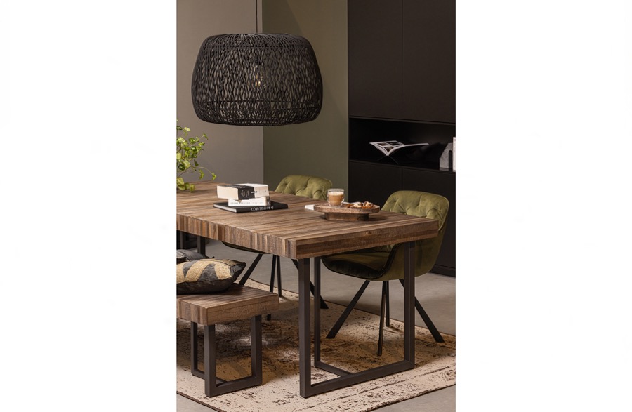 – Stilvolle Esszimmerbank mit robusten Holzarbeiten – Sitz aus recyceltem Teakholz – Jeder Artikel ist einzigartig! – H 45 cm x B 160 cm x T 40 cm Eine widerstandsfähige und robuste Tischplatte auf einem schlanken, mattschwarzen Fußgestell. Diese stilvolle Kombination finden Sie in der Serie Maxime aus der Exclusive-Kollektion der niederländischen Einrichtungsmarke WOOOD. Das Holz der Maxime-Artikel ist recyceltes Teakholz mit rauer Optik und warmer Färbung. Das charakteristische Aussehen des recycelten Holzes verleiht jedem Artikel einzigartige Eigenschaften. Material Teak ist ein tropisches Hartholz und eine sehr dauerhafte Holzart. Teakholz selbst hat eine dunkelbraune/rote Farbe, die sehr luxuriös aussieht. Teakholz zeichnet sich durch eine enge, gerade Maserung aus und ist daher sehr gut für die Verarbeitung geeignet. Bei der Verwendung im Freien kann es jedoch zu Verfärbungen oder Haarrissen im Holz kommen. Dies hat keinen Einfluss auf die Konstruktion. Abmessungen – Höhe: 45 cm – Breite: 160 cm – Tiefe: 40 cm – Obere Höhe: 8,5 cm – Dicke der Oberseite: 2 cm – Fußhöhe: 43 cm – Rahmenstärke: 3,5×3,5 cm / 2,5×2,5 cm – Fußtiefe: 30 cm – Abstand zwischen den Beinen: 140 / 80 cm – Tragfähigkeit: 100 kg – Gewicht: 18 kg Wartung Um Teakholzmöbel im Freien in optimalem Zustand zu halten, ist es ratsam, sie regelmäßig mit den entsprechenden Pflegemitteln zu pflegen; lassen Sie sich am besten von einem Fachmann beraten. Reinigen Sie Teakholz nicht mit zu viel Wasser, da sich sonst die Holzfasern aufrichten und die Möbel sehr rau werden. Lieferung Der Artikel wird in einem Paket geliefert und ist mit Hilfe der mitgelieferten Montageanleitung leicht zu montieren. Legen Sie Filzgleiter auf die Unterseite der Beine, um Schäden an harten Böden zu vermeiden.