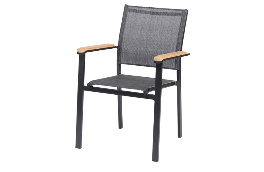 Freuen Sie sich auf den Gartenstuhl Memphis von Exotan. Dieser stapelbare Stuhl hat ein Gestell aus Aluminium und eine hochwertige Sitzfläche aus Textilene. Diese ist bequem, schnelltrocknend und UV-beständig. Die Armlehne ist aus FSC®-Teakholz gefertigt. Die Kombination schöner Materialien macht diesen Gartenstuhl pflegeleicht. Für diesen Gartenstuhl ist ein passender Gartentisch erhältlich. Teakholz ist ein Naturprodukt, das sich verfärben und Haarrisse entwickeln kann. Dies beeinträchtigt jedoch nicht die Konstruktion.