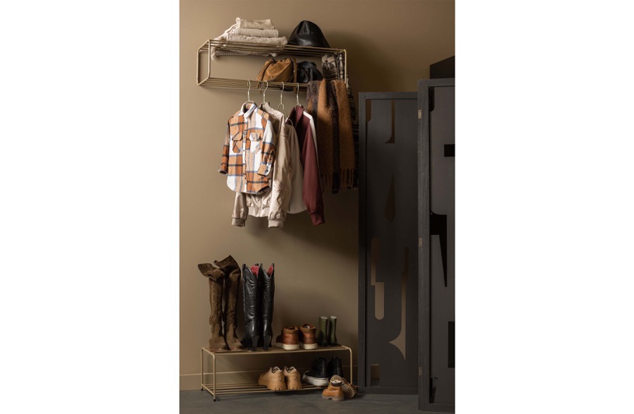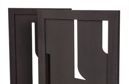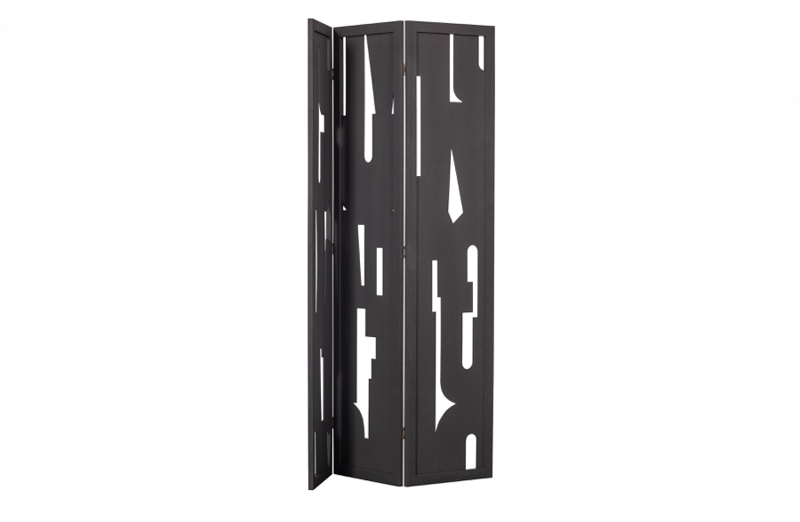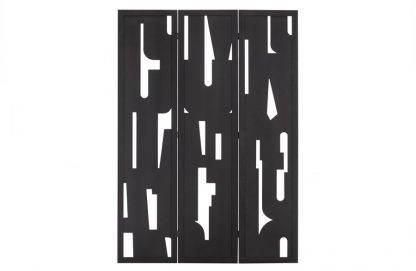 – Stilvolle Faltwand mit grafischem Design – Hergestellt aus MDF mit mattschwarzer Oberfläche – Ausgestattet mit drei aufklappbaren Paneelen – H 170 cm x B 120 cm x T 2 cm Der Paravent Merel aus der Kollektion der niederländischen Einrichtungsmarke WOOOD bietet eine stilvolle Lösung, um den Wohnraum auf subtile Weise zu teilen oder abzuschirmen. Der Paravent ist aus MDF mit einer mattschwarzen Oberfläche hergestellt. Das grafische Muster in den drei Paneelen erzeugt eine schöne Tiefenwirkung und bietet einen angemessenen Sichtschutz. Material Das MDF-Plattenmaterial in unseren Kollektionen besteht aus gepressten Holzfasern, die unter Druck mit Harz verklebt werden. Dadurch hat dieses Material eine sehr glatte Oberfläche. Die MDF-Platten in unseren Kollektionen werden in den Rückwänden einer Auswahl von Aufbewahrungsmöbeln verwendet. MDF bietet die Grundlage für Nussbaum- oder Eichenfurnier. Jede furnierte MDF-Platte wird in unserem eigenen Werk mit einer transparenten Schutzschicht versehen. Abmessungen – Höhe: 170 cm – Breite: 120 cm – Tiefe: 2 cm – Plattenstärke: 0,5 cm – Breite der Platte: 40 cm – Scharniere: 3 x 2 Stück Wartung Der Vorteil von gepresstem Plattenmaterial ist, dass es nicht splittert oder sich verzieht. Allerdings ist das Material aufgrund seiner hohen Saugfähigkeit sehr feuchtigkeits- und hitzeempfindlich. Infolgedessen dehnt sich die MDF aus und kann nicht mehr in ihren ursprünglichen Zustand zurückkehren. Lieferung Der Artikel wird in einem Paket geliefert. Um harte Böden zu schützen, legen Sie Filzgleiter auf die Unterseite.