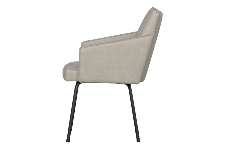 – Esszimmerstuhl mit stilvollem Design – Bequemer und sicherer Sitz dank Armlehnen – Kunstleder 100% Polyester – H 82 cm x B 61 cm x T 65 cm Stundenlanges Essen ist das, was der Mount Esszimmerstuhl bieten kann. Der Esszimmerstuhl aus der Kollektion der niederländischen Marke BePureHome hat ein stilvolles Design. Die scharfen Linien in Kombination mit den abgerundeten Ecken und der stilvollen Polsterung bilden einen schönen Kontrast. Ein echter Blickfang! Material Unser Mokvi-Lederimitat hat ein einzigartiges Aussehen und einen weichen Griff. Das Kunstleder besteht aus 100% Polyester und hat eine Martindale von >100.000, was den Stoff extrem verschleißfest macht. Die Mikrofaser wird aus sehr kleinen synthetischen Fasern gestrickt. Diese Produktionstechnik sorgt für die Festigkeit und einen feinen, weichen Griff. Der Stoff ist sehr farbecht und behält seine Form. Das Gestell des Esszimmerstuhls ist aus Metall mit einer mattschwarzen Pulverbeschichtung gefertigt. Der Sitzrahmen ist aus einer Kombination von FSC-zertifizierten Spanplatten, Sperrholz und Hartholz gefertigt. Der Sitz enthält einen T3538-Schaumstoff, der für einen leicht festen Sitz sorgt und stundenlanges bequemes Sitzen ermöglicht. Die Rückenlehne ist mit T2130-Schaum gefüllt. Abmessungen Der Mount Esszimmerstuhl hat eine Gesamthöhe von 82 cm, eine Gesamtbreite von 61 cm und eine Tiefe von 65 cm. Die Sitzhöhe ist 47 cm und die Sitztiefe beträgt 45 cm. Die Sitzbreite beträgt 50 cm. Die Armlehnen haben eine Höhe von 15 cm an der Vorderseite bis 21 cm an der Rückseite, gemessen vom Sitz, und eine Dicke von 5 cm. Die beiden vorderen Beine sind 39 cm hoch, die hinteren Beine sind 38 cm hoch und haben alle einen Durchmesser von 2,5 cm. Der Abstand zwischen den beiden vorderen Beinen beträgt 47 cm, zwischen dem vorderen und dem hinteren Bein sind es 52 cm. Die maximale Tragfähigkeit dieses Esszimmerstuhls beträgt 100 kg. Wartung Reinigen Sie dieses Lederimitat wöchentlich mit einem feuchten Tuch. Flecken? Verwenden Sie eine neutrale Seife, um den Fleck zu entfernen, und tupfen Sie ihn mit einem feuchten Tuch trocken. Stellen Sie die Möbel nicht in direktes Sonnenlicht, da dies zu Lichtflecken führen kann. Kunstleder muss nicht imprägniert werden, der Stoff ist mit einem Teflon-Gewebeschutz versehen. Von einer Behandlung mit Lederfett ist dringend abzuraten. Lieferung Der Esszimmerstuhl wird in einem Paket zu je zwei Stück geliefert. Die Beine sind mit Hilfe der mitgelieferten Montageanleitung leicht zu montieren. Um harte Böden zu schützen, legen Sie Filzgleiter unter die Beine 2 cm rund, dies verhindert Schäden.