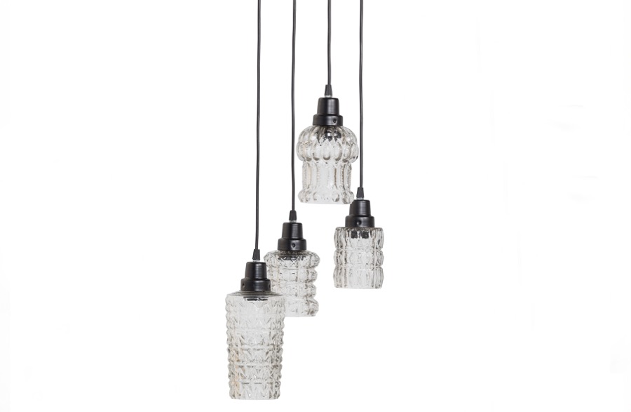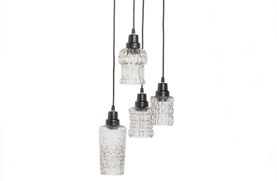 Multiple Hängende Lampe Mit 4 Gläsern Schwarz Glas