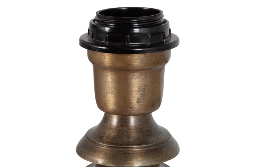 – Stilvoller Fuß für Tischlampe – Hergestellt aus Metall mit antiker Messingbeschichtung – Geeignet für ein E27-Leuchtmittel exklusiv – H 41 cm x Ø 16 cm Dieser auffällige Lampenständer stammt aus der Kollektion der niederländischen Marke BePureHome. Das stilvolle Design ist aus Aluminium mit einer Beschichtung aus antikem Messing gefertigt. Der Ohm-Lampenschirm ist großzügig dimensioniert und reflektiert das Licht mit einem warmen Schimmer, ein echter Stimmungsmacher also! Durch die freie Wahl des Lampenschirms ist Ohm perfekt für die Gestaltung Ihres Interieurs. Material Das Metall in unseren Kollektionen hat verschiedene Oberflächen, wie z.B. Pulverbeschichtung und Messing/Antikmessing. Die Antikmessing-Ausführungen unserer Kollektionen werden mit einer Mischung aus Kupfer und Zink auf das Metall aufgetragen, das dann gebürstet, matt oder glänzend ausgeführt werden kann. Antikes Messing verleiht dem Gegenstand ein verwittertes goldenes Aussehen. Abmessungen Der Lampenständer ist 41 cm hoch und an seiner breitesten Stelle 16 cm rund. Die schwarze Fassung hat einen Ø von 6 cm und eignet sich für eine E27-Lichtquelle mit maximal 250 V, 40 W. Das mattschwarze Kabel hat eine Gesamtlänge von 160 cm, von der Lampe bis zur Fassung. Der Handschalter ist 57 cm vom Lampensockel entfernt. Wartung Alle unsere Metalle aus der Sammlung sind gründlich behandelt worden und bedürfen daher keiner Nachbehandlung. Sollte das Metall beschädigt sein, wenden Sie sich bitte an eine spezialisierte Lackiererei. Behandeltes Metall lässt sich mit einem leicht angefeuchteten Tuch und einem milden Reinigungsmittel leicht reinigen; das anschließende Trocknen der Oberfläche sorgt für ein streifenfreies Ergebnis. Lieferung Der Sockel der Tischleuchte wird in einem Paket mit einer Mindestbestellmenge von vier Stück geliefert. Das Paket wird mit zusätzlichen Schutz- und Wartungsanweisungen geliefert.