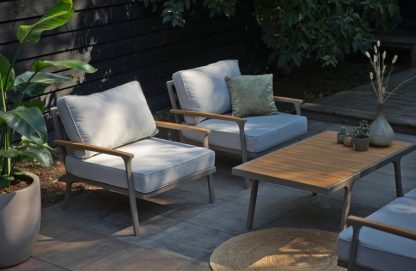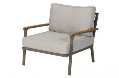 Entspannen Sie sich in dem bequemen Stuhl Orlando. Dieser Stuhl hat einen Aluminiumrahmen und ist mit Armlehnen aus FSC®-Teakholz ausgestattet. Der Stuhl hat schöne und bequeme Kissen mit einem Olefin-Oberstoff und einer schnell trocknenden Schaumstofffüllung. Dieser Schaumstoff ist wasserdurchlässig, schimmel- und verrottungsfest. Sie können die Garnitur also getrost die ganze Gartensaison über draußen stehen lassen. Lagern Sie die Kissen oder stellen Sie sie bei starkem Regen schräg. Um das Trocknen nach einem Regenschauer zu beschleunigen, können die Elemente vor der Benutzung mit einem trockenen Tuch abgewischt werden. Teakholz ist ein Naturprodukt, das sich durch verschiedene Witterungseinflüsse verfärben und Haarrisse bilden kann. Die Konstruktion wird dadurch nicht beeinträchtigt.