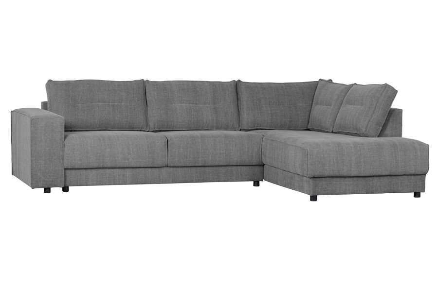 – Stilvolles, geräumiges Ecksofa – Strapazierfähiges Segeltuch 60% Baumwolle /40% Leinen – Erhältlich in rechter und linker Ausführung – H 81 cm x B 282 cm x T 196 cm Das Ecksofa Randy schafft sofort Charakter und Atmosphäre. Dieses stilvolle Ecksofa stammt aus der Kollektion der niederländischen Marke Basiclabel. Mit seinem robusten Canvas-Gewebe Martindale: 24.000 aus einer Kombination von Baumwolle und Leinen haben Sie einen attraktiven Gegenstand in Ihrem Zuhause. Der Stoff ist stonewashed, d.h. jedes Stoffbad hinterlässt seine eigenen ursprünglichen Merkmale im Stoff. Aufgrund dieser Färbetechnik ist der Stoff nicht farbecht. Die Sitzkissen haben eine Füllung aus festem Schaumstoff T3542/HR3020 mit atmungsaktiven Eigenschaften. Dieser Schaumstoff nimmt schnell seine ursprüngliche Form an, so dass das Sofa jahrelanges Sitzvergnügen bietet. Das Ecksofa hat Kunststoffbeine mit einer Höhe von 4,5 cm. Die Sitzhöhe des Sofas beträgt 44 cm. Die Sitzbreite des Sofas beträgt 246 cm. Die Sitzbreite des Ecksofas mit Longchair beträgt 159 cm, so dass mehr als genug Platz für die ganze Familie vorhanden ist. Die Sitztiefe beträgt 58 cm. Die Armlehne hat eine Höhe von 60 cm und eine Breite von 25 cm. Das Ecksofa wird in zwei separaten Teilen geliefert. Diese lassen sich mit Hilfe eines Bügels leicht verbinden. Um harte Böden zu schützen, legen Sie Filzschoner unter die Beine.