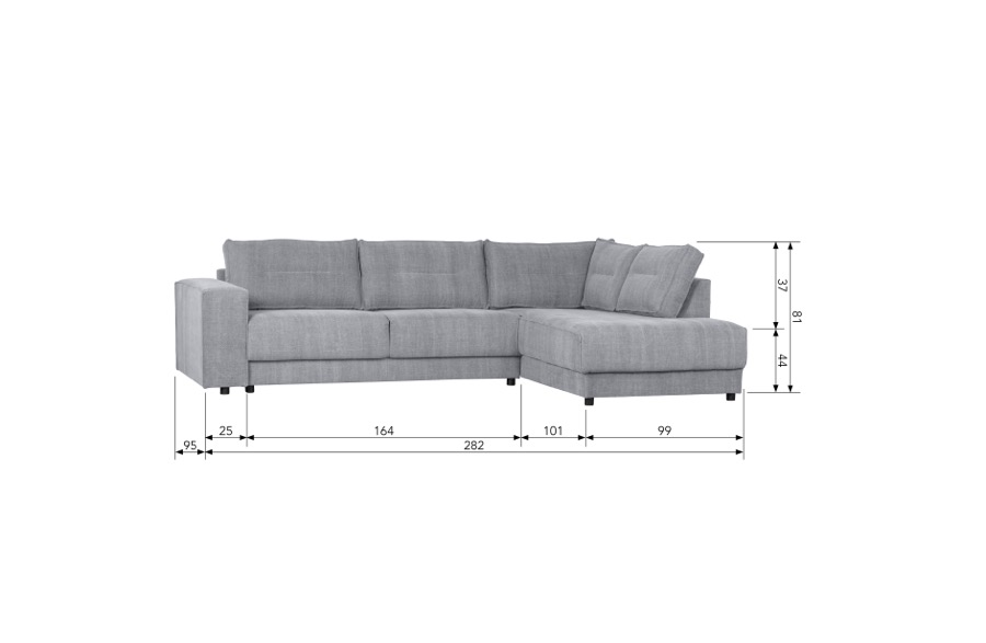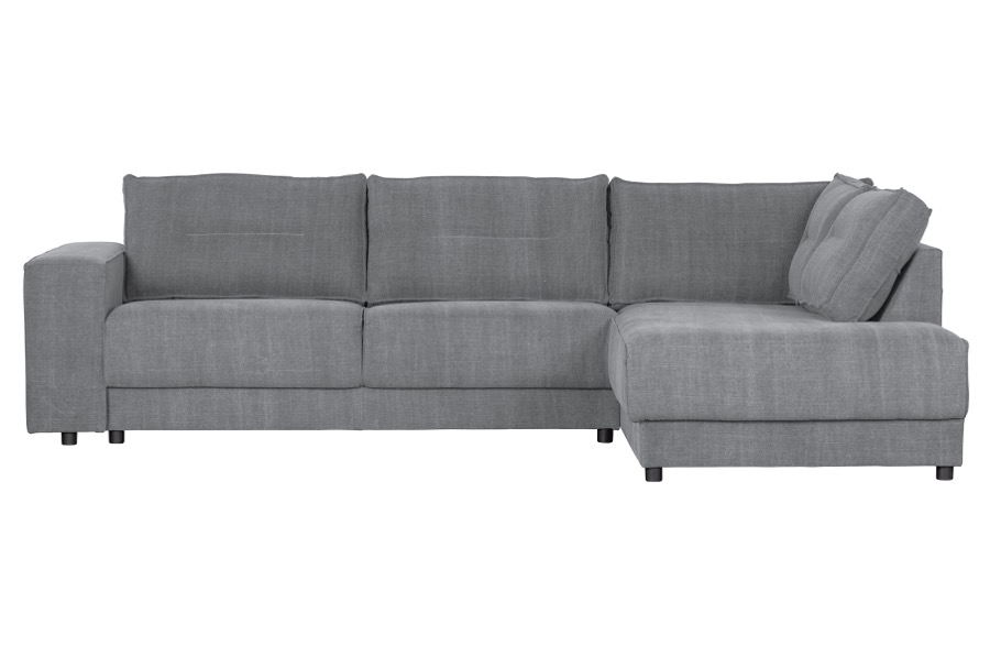 – Stilvolles, geräumiges Ecksofa – Strapazierfähiges Segeltuch 60% Baumwolle /40% Leinen – Erhältlich in rechter und linker Ausführung – H 81 cm x B 282 cm x T 196 cm Das Ecksofa Randy schafft sofort Charakter und Atmosphäre. Dieses stilvolle Ecksofa stammt aus der Kollektion der niederländischen Marke Basiclabel. Mit seinem robusten Canvas-Gewebe Martindale: 24.000 aus einer Kombination von Baumwolle und Leinen haben Sie einen attraktiven Gegenstand in Ihrem Zuhause. Der Stoff ist stonewashed, d.h. jedes Stoffbad hinterlässt seine eigenen ursprünglichen Merkmale im Stoff. Aufgrund dieser Färbetechnik ist der Stoff nicht farbecht. Die Sitzkissen haben eine Füllung aus festem Schaumstoff T3542/HR3020 mit atmungsaktiven Eigenschaften. Dieser Schaumstoff nimmt schnell seine ursprüngliche Form an, so dass das Sofa jahrelanges Sitzvergnügen bietet. Das Ecksofa hat Kunststoffbeine mit einer Höhe von 4,5 cm. Die Sitzhöhe des Sofas beträgt 44 cm. Die Sitzbreite des Sofas beträgt 246 cm. Die Sitzbreite des Ecksofas mit Longchair beträgt 159 cm, so dass mehr als genug Platz für die ganze Familie vorhanden ist. Die Sitztiefe beträgt 58 cm. Die Armlehne hat eine Höhe von 60 cm und eine Breite von 25 cm. Das Ecksofa wird in zwei separaten Teilen geliefert. Diese lassen sich mit Hilfe eines Bügels leicht verbinden. Um harte Böden zu schützen, legen Sie Filzschoner unter die Beine.