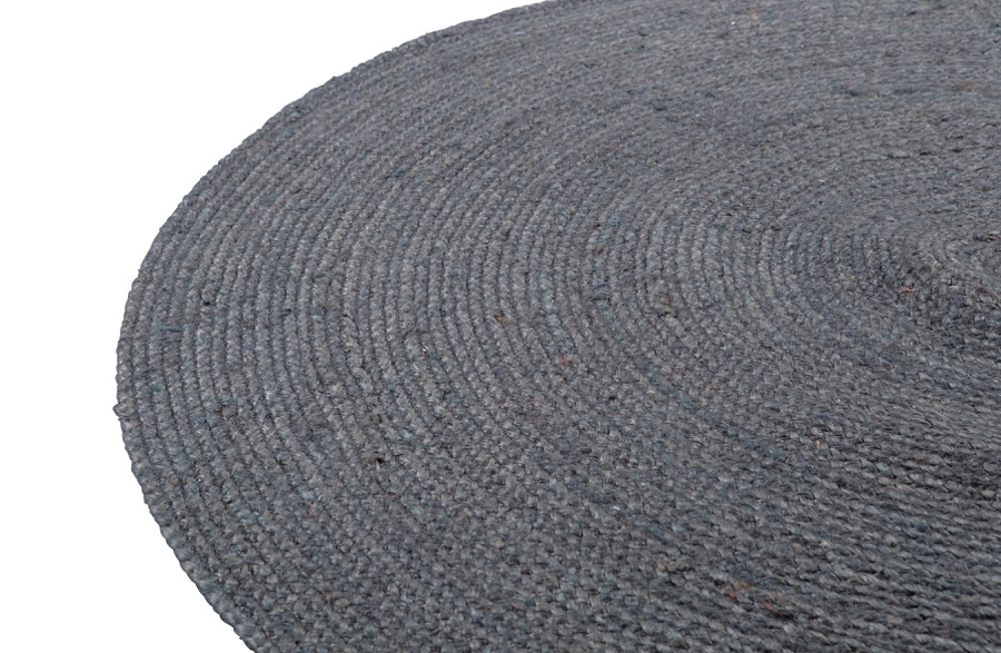 Atmosphärischer, natürlicher Teppich 100% Jute in Asphaltoptik Atmosphärisch in jedem Raum Ø150 cm Ein attraktiver Teppich mit einer warmen Ausstrahlung, das ist der Teppich Ross aus der Kollektion der niederländischen Marke WOOOD. Ross ist aus 100 % Jute in einem warmen und satten asphaltgrauen Farbton gefertigt. Durch das natürliche Jutegewebe und die warme graue Farbe bringt Ross Atmosphäre in jeden Raum. Pflege: Reinigen Sie sichtbare Flecken oder Verschmutzungen vorsichtig von Hand.