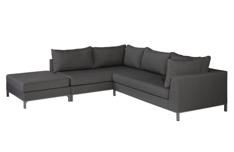 – Großzügiges Lounge-Ecksofa für den Außenbereich – Hergestellt aus Aluminium mit wasserdichter Abdeckung – Erhältlich als linke und rechte Version – H 60 cm x B 262 cm x T 246 cm Die großzügige Sicily-Serie der niederländischen Outdoor-Marke Exotan eignet sich für den großen Garten oder den Balkon, um lange Sommertage mit der ganzen Familie zu genießen. Der geräumige Sitz und der luxuriöse Loungebereich bieten 4-6 Personen die Möglichkeit, sich zu entspannen. Sind Sie bereit für den Sommer? Material Die Sicily-Serie von Exotan besteht aus einem Aluminiumrahmen mit einer mattschwarzen Beschichtung. Der Stoffbezug ist witterungsbeständig und wasserdicht. Die Kissen haben eine offene Struktur am Boden, so dass das Wasser schnell ablaufen kann. Dadurch wird das Loungeset auch schnell wieder trocken. Abmessungen Das Lounge-Set hat eine Höhe von 60 cm, eine Breite von 262 cm und eine Tiefe von 246 cm. Die Sitzhöhe des Ecksofas Sicily beträgt 40 cm inklusive Sitzkissen. Die Sitzbreite von 155 cm und die Sitztiefe von 56 cm bieten eine sehr großzügige Sitzfläche. Die Arm- und Rückenlehne sind 21 cm hoch, gemessen vom Sitz aus. Die Beine sind 12 cm hoch und 3×3 cm groß. Die maximale Belastbarkeit des Loungesets Sicily beträgt bei gleichmäßiger Verteilung 500 kg. Wartung Es wird empfohlen, die Kissen bei starkem Regen zu lagern oder sie schräg zu stellen. Um das Trocknen nach dem Duschen zu beschleunigen, empfehlen wir, die Elemente vor dem Gebrauch mit einem trockenen Tuch abzuwischen. Schützen Sie die Möbel vor Regen, Nacht und Winter mit einer Plastikfolie oder Schutzhülle. Wenn möglich, ist es besser, die Möbel im Winter im Haus zu lagern. Entfernen Sie eventuelle Flecken mit einer neutralen Seife. Verwenden Sie keine Chemikalien oder Hochdruckreiniger. Lieferung Das Lounge-Ecksofa wird in mehreren Paketen geliefert und ist mit Hilfe der beiliegenden Aufbauanleitung leicht zu montieren.