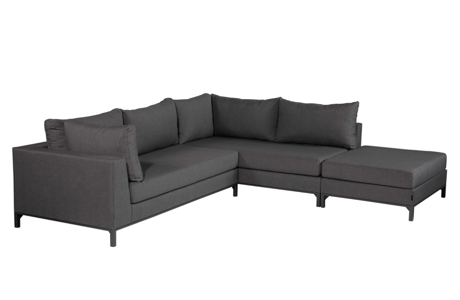 – Großzügiges Lounge-Ecksofa für den Außenbereich – Hergestellt aus Aluminium mit wasserdichter Abdeckung – Erhältlich als linke und rechte Version – H 60 cm x B 262 cm x T 246 cm Die großzügige Sicily-Serie der niederländischen Outdoor-Marke Exotan eignet sich für den großen Garten oder den Balkon, um lange Sommertage mit der ganzen Familie zu genießen. Der geräumige Sitz und der luxuriöse Loungebereich bieten 4-6 Personen die Möglichkeit, sich zu entspannen. Sind Sie bereit für den Sommer? Material Die Sicily-Serie von Exotan besteht aus einem Aluminiumrahmen mit einer mattschwarzen Beschichtung. Der Stoffbezug ist witterungsbeständig und wasserdicht. Die Kissen haben eine offene Struktur am Boden, so dass das Wasser schnell ablaufen kann. Dadurch wird das Loungeset auch schnell wieder trocken. Abmessungen Das Lounge-Set hat eine Höhe von 60 cm, eine Breite von 262 cm und eine Tiefe von 246 cm. Die Sitzhöhe des Ecksofas Sicily beträgt 40 cm inklusive Sitzkissen. Die Sitzbreite von 155 cm und die Sitztiefe von 56 cm bieten eine sehr großzügige Sitzfläche. Die Arm- und Rückenlehne sind 21 cm hoch, gemessen vom Sitz aus. Die Beine sind 12 cm hoch und 3×3 cm groß. Die maximale Belastbarkeit des Loungesets Sicily beträgt bei gleichmäßiger Verteilung 500 kg. Wartung Es wird empfohlen, die Kissen bei starkem Regen zu lagern oder sie schräg zu stellen. Um das Trocknen nach dem Duschen zu beschleunigen, empfehlen wir, die Elemente vor dem Gebrauch mit einem trockenen Tuch abzuwischen. Schützen Sie die Möbel vor Regen, Nacht und Winter mit einer Plastikfolie oder Schutzhülle. Wenn möglich, ist es besser, die Möbel im Winter im Haus zu lagern. Entfernen Sie eventuelle Flecken mit einer neutralen Seife. Verwenden Sie keine Chemikalien oder Hochdruckreiniger. Lieferung Das Lounge-Ecksofa wird in mehreren Paketen geliefert und ist mit Hilfe der beiliegenden Aufbauanleitung leicht zu montieren.