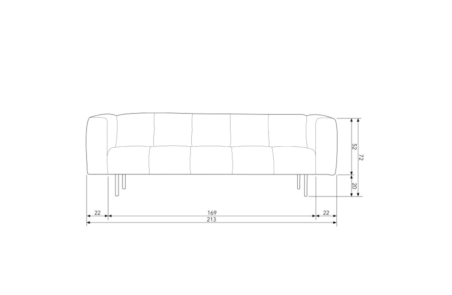Kompakte Bank auf hohen Beinen Elegantes Design und bequeme Sitze Erhältlich in mehreren Varianten H 72 cm x B 213 cm x T 90 cm Das 2,5-sitzige Sofa Skin ist von der niederländischen Marke vtwonen. Dieser flachgewebte Stoff im Vintage-Look ist eine Kombination aus zwei natürlichen Garnen, 60% Baumwolle und 40% Leinen. Wie bei allen Produkten, die aus 100 % natürlichen Rohstoffen hergestellt werden, sind die lebendigen Eigenschaften deutlich sichtbar. Der kompakte Stoff ist stonewashed, was ihm ein schönes, mattes Aussehen verleiht. Stonewashed-Stoffe sind anfälliger für Verfärbungen, daher wird empfohlen, direkte Sonneneinstrahlung zu vermeiden und feuchte Flecken nicht zu reiben. Die Martindale des Webstoffs im Vintage-Look beträgt 24.000, was für jahrelangen Wohngenuss geeignet ist. Der Rahmen wird aus Massivholz, Spanplatten, Hartfaserplatten, Sperrholz, Schaumstoff 18/30 kg/m3, RE kg/m3 hergestellt. Der Sitz ist mit Schaumstoff HR35/32 kg/m3 gefüllt. Die Rückenlehne ist mit Schaumstoff HR30/20 kg/m3 gefüllt. Die Metallbeine mit einem Durchmesser von 25 mm und einer Höhe von 20 cm haben eine schwarze Metalloberfläche. Das Gewicht des Sofas beträgt 52 kg. Die Sitztiefe des Sofas Skin beträgt 60 cm, die Sitzhöhe 46 cm und die Sitzbreite 169 cm. Die Armlehnen haben eine Höhe von 72 cm und eine Dicke von 22 cm. Die Skin-Serie ist als 4-Sitzer-Sofa, 2,5-Sitzer-Sofa und Sessel und in vielen Stoffvarianten erhältlich.