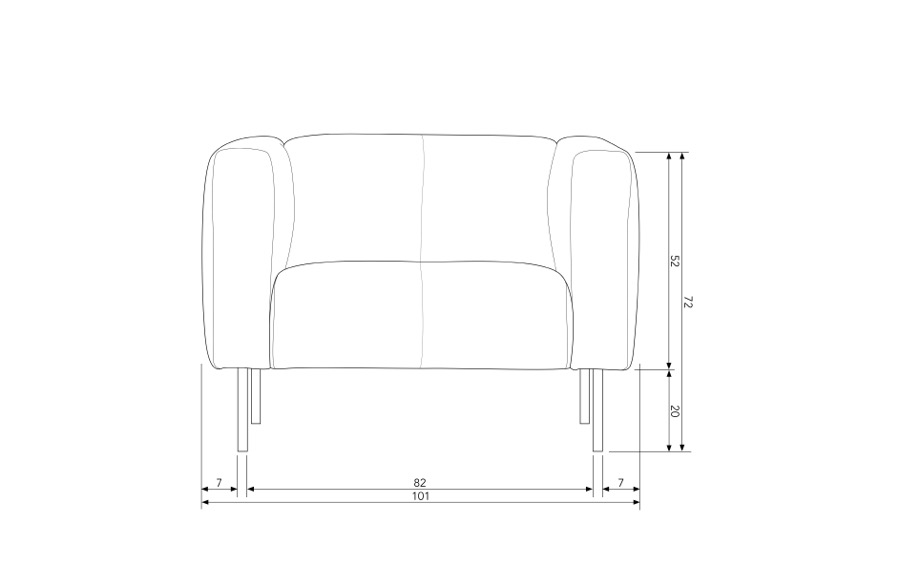 Kompakter Sessel mit stilvollem Design Fester, aktiver Sitz Leicht mit anderen Skin-Produkten zu kombinieren H 72 cm x B 101 cm x T 88 cm Der Sessel Skin ist von der niederländischen Marke vtwonen. Bringen Sie königlichen Luxus in Ihr Zuhause mit diesem wolkigen Samt. Der kompakt gewebte Stoff besteht aus 100% Polyestergarn. Die ungeraden Stangen sind gleichmäßig gekürzt, was dem Stoff seinen samtweichen Griff verleiht. Das wolkige Aussehen des Stoffes sorgt für ein angenehmes und warmes Aussehen. Mit einer Martindale von 20.000 ist der Stoff für den Hausgebrauch geeignet, erfordert aber eine sorgfältige Behandlung. Die dunklen Farbtöne können im Laufe der Zeit durch direkte Sonneneinstrahlung etwas aufhellen, und bei Flecken empfiehlt es sich, sie sofort mit einem sauberen, leicht feuchten Tuch abzuwischen. Der Rahmen wird aus Massivholz, Spanplatten, Hartfaserplatten, Sperrholz, Schaumstoff 18/30 kg/m3, RE kg/m3 hergestellt. Der Sitz ist mit Schaumstoff HR35/32 kg/m3 gefüllt. Die Rückenlehne ist mit Schaumstoff HR30/20 kg/m3 gefüllt. Die Metallbeine mit einem Durchmesser von 25 mm und einer Höhe von 20 cm haben eine schwarze Metalloberfläche. Das Gewicht des Sessels beträgt 29 kg. Die Sitztiefe des Sessels ist 60 cm, die Sitzhöhe beträgt 46 cm und die Sitzbreite 65 cm. Die Armlehnen sind 72 cm hoch und 18 cm dick. Die Skin-Serie ist als 4-sitziges Sofa, 2,5-sitziges Sofa und Sessel erhältlich. Um harte Böden zu schützen, legen Sie Filzgleiter unter die Beine.