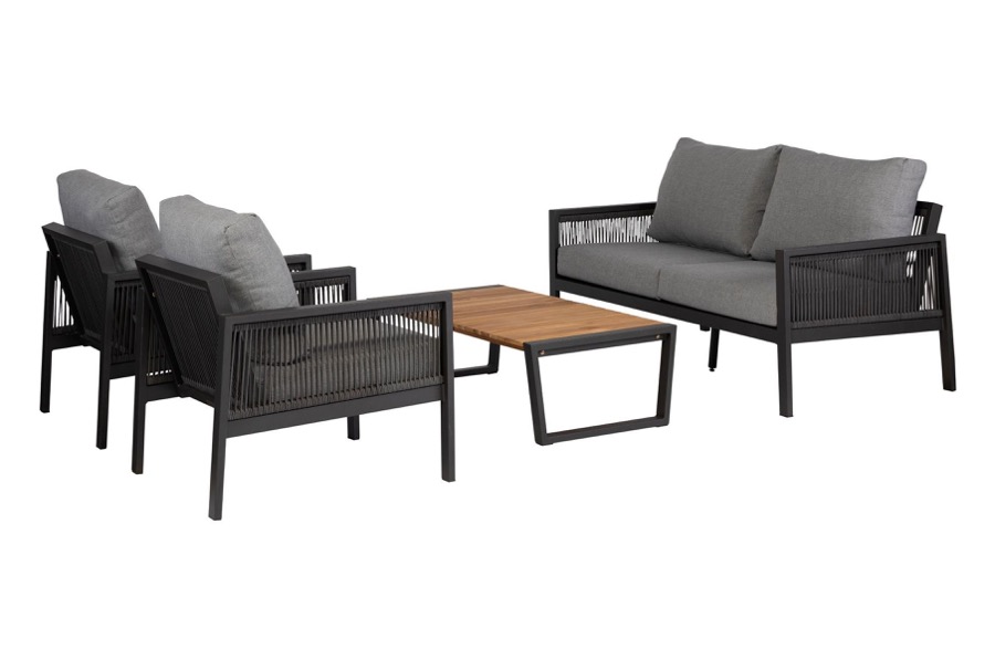 Lounging und Essen im gleichen Stil. Sie können in der Sydney. Das Kaffee-Set hat einen Aluminiumrahmen mit Seil und Teak FSC beendet. Ausgestattet mit bequemen Rücken- und Sitzkissen. Die Couchgarnitur besteht aus: 2x Sessel: 70x80x70 cm 1x 2-Sitzer-Bank: 158x80x70 cm 1x Couchtisch: 120x60x35 cm Teakholz ist ein Naturprodukt, das sich durch verschiedene Witterungseinflüsse verfärben und Haarrisse entwickeln kann. Die Konstruktion wird dadurch nicht beeinträchtigt. Um Teakholz in optimalem Zustand zu halten, empfehlen wir eine regelmäßige Pflege mit den entsprechenden Exotan Care Produkten.