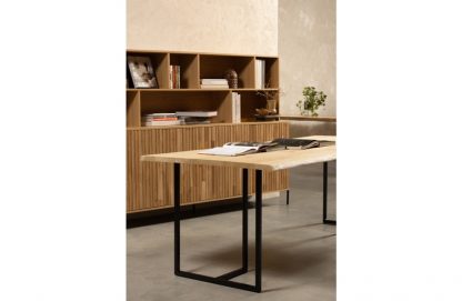 – Natürlich geformter Baumstammtisch – Mit W-Fuß aus Metall – Teil der Serie WOOOD Tablo – H 75 cm x B 220 x T 90 cm Gestalten Sie Ihren idealen Essbereich mit den Elementen aus der Tablo-Serie der niederländischen Einrichtungsmarke WOOOD. Tablo bietet viele Kombinationsmöglichkeiten und verschiedene Größen an, um Ihren Essbereich genau so einzurichten, wie Sie es wünschen. Wählen Sie zum Beispiel diese robuste Baumstamm-Tischplatte mit dem schlanken W-Fuß für einen luftigen, schicken Look. Material Eichenholz zeichnet sich durch seinen hellbraunen Farbton mit sanftem gelbem Schimmer und deutlich sichtbarer Maserung aus. Das Eichenholz in unseren Kollektionen ist immer zu 100 % FSC-zertifiziert. Unbehandeltes Eichenholz kann unter dem Einfluss von Licht und Wärme sein Aussehen verändern. Inwieweit dies der Fall ist, hängt von dem Raum ab, in dem die Möbel aufgestellt sind. Abweichungen der Möbel gegenüber dem Modell im Ausstellungsraum sind daher selbstverständlich. Das Metall unserer Kollektionen ist in verschiedenen Ausführungen erhältlich, wie z. B. pulverbeschichtet und Messing/Altmessing. Eine Pulverbeschichtung sorgt für ein luxuriöses, mattes Aussehen und schützt das Metall für die gesamte Lebensdauer. Eine Pulverbeschichtung ist ein Lack, der bei hohen Temperaturen auf das Metall aufgebracht wird. Abmessungen – Höhe: 75 cm – Breite: 220 cm – Tiefe: 90 cm – Fußgestell: 2,5 x 2,5 cm – Gewicht: 36 kg – Gewichtskapazität: 150 kg Wartung Ein unbehandeltes Möbelstück muss gründlich nachbearbeitet werden, damit es sich nicht verzieht. Das bedeutet, dass die Möbel von allen Seiten behandelt werden müssen, auch von der Unterseite. Behandeltes Eichenholz ist sehr leicht zu pflegen. Halten Sie die Möbel regelmäßig mit einem sauberen, trockenen Tuch staubfrei. Verwenden Sie immer einen einfachen Holzschutz, z. B. einen Untersetzer unter einem Trinkglas oder einer heißen Pfanne. Alle unsere Metalle in der Sammlung sind gründlich behandelt worden und müssen daher nicht erneut behandelt werden. Sollte das Metall beschädigt sein, wenden Sie sich an einen Lackierfachbetrieb. Behandeltes Metall lässt sich mit einem leicht angefeuchteten Tuch und einem milden Reinigungsmittel leicht sauber halten. Lieferung Der Combi-Tablo wird in drei Paketen geliefert. Das Tischbein wird anhand der mitgelieferten Montageanleitung montiert. Um harte Böden zu schützen, legen Sie Filzgleiter auf die Unterseite der Beine.