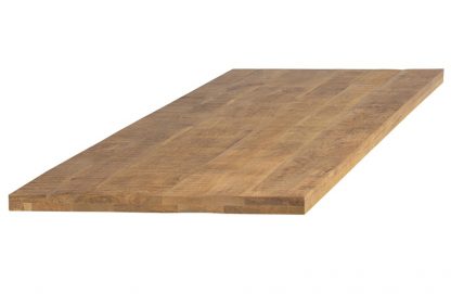 – Robuste und widerstandsfähige Esstischplatte – grob gesägtes Mangoholz – Cool: stellen Sie Ihren eigenen Esstisch zusammen! – H 5,5 cm x B 200 cm x T 90 cm Mit der Tablo-Serie von WOOOD können Sie ganz einfach Ihren eigenen Esszimmer-Tisch zusammenstellen. Kombinieren Sie Ihr bevorzugtes Tablo-Tischgestell mit einer Platte und schaffen Sie so den Essbereich Ihrer Träume. Wie cool ist das denn! Material Mangoholz ist bekannt für seine warme goldbraune Farbe, sein nachhaltiges Wachstum und seine lange Haltbarkeit. Mangoholz zeichnet sich außerdem durch deutlich sichtbare Maserungen und Farbnuancen aus. Die Maserung, der gelbe Schimmer oder die dunklen Linien und Äste machen jedes Stück Mangoholz zu einem Unikat. Mangoholz ist sehr stark und gehört zu den härteren Hölzern, daher kann ein Gegenstand aus Mangoholz nicht so leicht beschädigt werden. Abmessungen Diese Tablo-Tischplatte aus Mangoholz hat eine Länge von 200 cm und eine Breite von 90 cm, so dass Sie problemlos mit 6-8 Personen sitzen können. Die Platte ist 5,5 cm dick. Die Tischplatte wiegt 40 kg. Wartung Möbel aus Mangoholz sind leicht zu pflegen. Mit einem leicht feuchten, sauberen Tuch können Sie sie leicht staub- und fleckenfrei halten. Gegenstände aus Mangoholz sind nur für den Gebrauch in Innenräumen bestimmt. Eine zusätzliche Behandlung oder ein zusätzlicher Schutz ist mit einer transparenten Beschichtung möglich, wird aber in den ersten Jahren nicht als notwendig erachtet. Lassen Sie sich in jedem Fall von einem Lackierbetrieb beraten und informieren Sie sich über die Behandlung des Mangoholzartikels. Lieferung Die runden und ovalen Tablo-Tischplatten sind für die Befestigung der Tischbeine vorgebohrt nicht bei den rechteckigen Tischplatten. Bitte prüfen Sie bei den vorgebohrten, welches Bohrbild gewählt werden soll. Bitte beachten Sie, dass der Tablo C-Fuß aufgrund der Breite der Montageplatte des Fußes nicht unter Tablo-Tischplatten mit verdicktem Rand montiert werden kann.