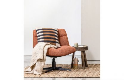 – Bequemer Drehstuhl – Gepolstert mit weichem Bouclé 100% Polyester – Stabiler Metallfuß in Schwarz – H 80 cm x B 75 cm x T 75 cm Mit diesem Vinny-Drehstuhl der niederländischen Marke WOOOD holen Sie sich einen herrlich bequemen Sitz in Ihr Zuhause. Der Vinny-Drehstuhl ist ein echter Blickfang, der sich problemlos in jeden Einrichtungsstil einfügt. Die leicht niedrige Rückenlehne sorgt dafür, dass Vinny kompakt wirkt und ein großzügiges Blickfeld im Wohnbereich bewahrt. Dieser kuschelige Sessel ist in verschiedenen Farben erhältlich. Material Vinny ist mit dem superweichen Bouclé-Stoff Cres gepolstert. Die Zusammensetzung aus 100% Polyester macht den Drehstuhl sehr pflegeleicht. Der Vinny hat einen schwarzen Metallsockel mit vier Beinen und ein leichtgängiges Drehsystem. Die Polyurethanschaum-Füllung hat einen hohen Sitzkomfort und ist daher perfekt für einen Moment des Genusses mit einem guten Buch! Abmessungen Der Vinny-Drehstuhl hat eine Gesamthöhe von 80 cm, die breiteste und tiefste Stelle misst 75 cm. Die Sitzhöhe beträgt 48 cm und die Sitztiefe 52 cm, da fällt das Faulenzen leicht! Die Sitzbreite beträgt 75 cm, die Rückenlehne ist 32 cm hoch und 12 cm dick. Der Metallsockel ist 28 cm hoch und 51 cm breit und tief, das Drehsystem hat einen Durchmesser von 6 cm und jedes Bein hat eine Länge von 34 cm. Der Drehstuhl hat eine maximale Tragfähigkeit von 120 kg. Wartung Der Stoff ist durch regelmäßiges Staubsaugen mit einer Möbelbürste leicht sauber zu halten. Flecken? Vorsichtig mit einem leicht feuchten Tuch abtupfen. Eine Imprägnierung wird nicht empfohlen. Lieferung Um harte Böden zu schützen, legen Sie Filzgleiter unter die Beine. Der Vinny wird als einfacher Bausatz mit einer klaren Montageanleitung geliefert.