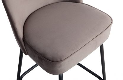 – Schicker, eleganter Barhocker – Praktisch: ein Barhocker mit Fußstütze – Nougat-Samt 100% Polyester – H 89 x B 50 x T 55 cm Chic und elegant, das ist dieser Vogue Barhocker aus der Kollektion der niederländischen Marke BePureHome. Die Beine sind aus Metall mit einer schwarzen Pulverbeschichtung. Die freundlichen runden Formen in Kombination mit dem weichen, satten Samtstoff machen diesen Barhocker zu einem Schmuckstück für die heutige Einrichtung. Material Dieser Samtstoff hat ein luxuriöses, mattes Aussehen. Unser Voquar-Samt besteht aus 100% Polyester und hat eine luxuriöse Qualität. Das Material ist sehr gut für eine intensive Nutzung geeignet Martindale 90.000. Neben dem stilvollen Design bleibt der Samtstoff lange Zeit schön. Der Samtstoff knittert nicht so leicht und ist farbecht. Zur Überraschung vieler ist der Stoff sehr pflegeleicht. Das Gestell des Vogue-Barhockers ist aus Metall mit einer mattschwarzen Pulverbeschichtung gefertigt. Der Sitzrahmen ist aus einer Kombination von Spanplatten und Sperrholz gefertigt. Der Sitz ist mit elastischen Bändern und einem T3542-Schaumstoff ausgestattet, der einen leicht festen Sitzkomfort bietet, der stundenlang anhält. Die Rückenlehne ist mit T2120-Schaum gefüllt. Abmessungen Der Barhocker Vogue hat eine Sitzhöhe von 64 cm, eine Sitzbreite von 44 cm und eine Sitztiefe von 38 cm. Die Beine haben eine Höhe von 53,5 cm. Die Höhe der Rückenlehne vom Sitz aus beträgt 26 cm und die Breite der Rückenlehne ist 44 cm. Die Dicke des Sitzes beträgt 9,5 cm. Der Barhocker hat einen aktiven, festen Sitz. Das Höchstgewicht beträgt 100 kg. Für diesen Vogue-Barhocker empfehlen wir eine Stehtischhöhe von 95 cm. Wartung Kleine Flecken lassen sich leicht durch Abtupfen mit einem saugfähigen Tuch entfernen. Größere Flecken lassen sich leicht mit einem milden Reinigungsmittel und einem Mikrofasertuch entfernen. Verwenden Sie gegebenenfalls einen Haartrockner, um den Fleck schneller zu trocknen. Halten Sie genügend Abstand, damit der Stoff nicht verbrennt. Anschließend kann der Stoff mit einer Samtbürste gebürstet werden. Diese Bürste ist sehr gut für die wöchentliche Pflege geeignet. Eine Imprägnierung wird nicht empfohlen. Wenn eine Imprägnierung für notwendig erachtet wird, geschieht dies auf eigene Gefahr. Lieferung Der Barhocker wird in einem Paket geliefert. Die Beine sind mit Hilfe der mitgelieferten Montageanleitung leicht selbst zu montieren. Um harte Böden zu schützen, legen Sie Filzgleiter unter die Beine 2 cm rund, dies verhindert Schäden.