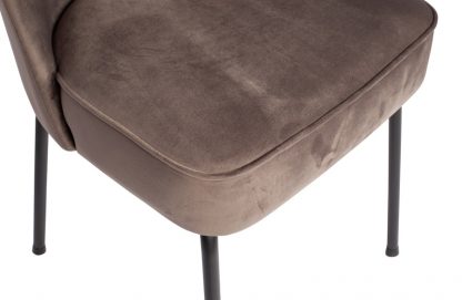 – Stilvoller, bequemer Esszimmerstuhl – Freundliche, weiche Formen – Nougat-Samt 100% Polyester – H 83 cm x B 50 cm x T 57 cm Der Vogue Esszimmerstuhl ist aus der Kollektion der niederländischen Marke BePureHome. Der Stuhl ist superbequem und der weiche Stoff und die freundlichen runden Formen machen diesen schicken Esszimmerstuhl zu einer Zierde der heutigen Einrichtung. Durch das schlanke Design passt dieser Stuhl gut in verschiedene Wohnstile. Material Dieser Samtstoff hat ein luxuriöses, mattes Aussehen. Unser Voquar-Samt besteht aus 100% Polyester und hat eine luxuriöse Qualität. Das Material eignet sich sehr gut für eine intensive Nutzung Martindale 90.000. Neben dem stilvollen Design bleibt der Samtstoff lange Zeit schön. Der Samtstoff knittert nicht so leicht und ist farbecht. Zur Überraschung vieler ist der Stoff sehr pflegeleicht. Das Gestell des Vogue-Esszimmerstuhls ist aus Metall mit einer mattschwarzen Pulverbeschichtung gefertigt. Der Sitzrahmen ist aus einer Kombination von Spanplatten und Sperrholz gefertigt. Der Sitz ist mit elastischen Bändern und einem T3542-Schaumstoff ausgestattet, der für einen leicht festen Sitz sorgt, der stundenlang hält. Die Rückenlehne ist mit T2120-Schaum gefüllt. Abmessungen Der Vogue Esszimmerstuhl hat eine Gesamthöhe von 83 cm, eine Gesamtbreite von 50 cm und eine Tiefe von 57 cm. Die Sitzhöhe ist 50 cm und die Sitztiefe beträgt 45 cm. Die Sitzbreite beträgt 50 cm. Die vier Beine haben jeweils eine Höhe von 40 cm und einen Durchmesser von 2 cm. Wartung Kleine Flecken lassen sich leicht durch Abtupfen mit einem saugfähigen Tuch entfernen. Größere Flecken lassen sich leicht mit einem milden Reinigungsmittel und einem Mikrofasertuch entfernen. Verwenden Sie gegebenenfalls einen Haartrockner, um den Fleck schneller zu trocknen. Halten Sie genügend Abstand, damit der Stoff nicht verbrennt. Anschließend kann der Stoff mit einer Samtbürste gebürstet werden. Diese Bürste ist sehr gut für die wöchentliche Pflege geeignet. Eine Imprägnierung wird nicht empfohlen. Wenn eine Imprägnierung für notwendig erachtet wird, geschieht dies auf eigene Gefahr. Lieferung Der Esszimmerstuhl wird in zwei Teilen in einem Paket geliefert. Die Beine sind mit Hilfe der mitgelieferten Montageanleitung leicht selbst zu montieren. Um harte Böden zu schützen, legen Sie Filzgleiter unter die Beine 2 cm rund, dies verhindert Schäden.