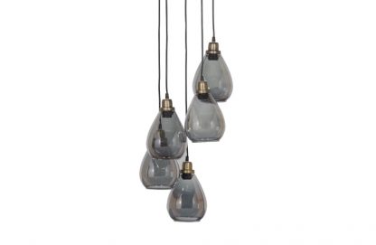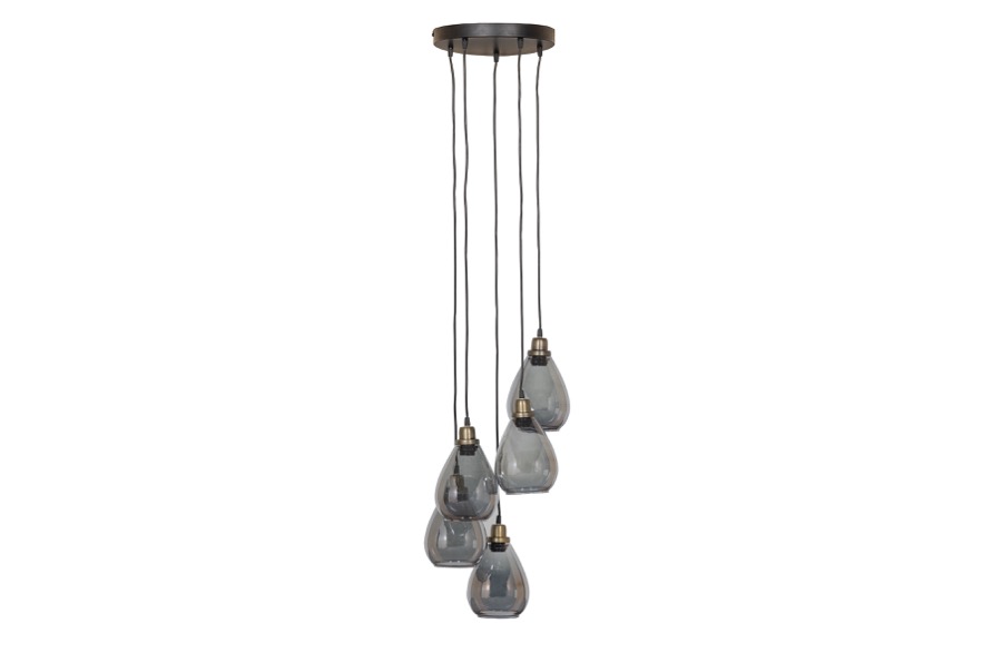 Schicke, verspielte Pendelleuchte Mundgeblasenes graues Rauchglas Bestückt mit 5 Lampen, Sockel E27 max. 40 Watt H 147 x B 40 x T 40 cm Diese verspielte und schicke Waterfall-Pendelleuchte stammt aus der Kollektion der niederländischen Marke BePureHome. Waterfall ist eine Pendelleuchte mit 5 Lichtpunkten aus mundgeblasenem grauem Rauchglas an einer schwarzen Textilkordel mit einer schwarzen Metalldeckenplatte. Durch das graue Rauchglas verbreitet der Wasserfall ein schönes, weiches und diffuses Licht. Die Lampen hängen alle in unterschiedlichen Höhen, wodurch es wie ein Wasserfall aussieht. Diese stimmungsvolle Pendelleuchte Waterfall ist für eine große Armatur E27 max. 40 Watt geeignet, wird ohne Leuchtmittel geliefert und hat eine 1,5 Meter lange schwarze Textilkordel. Die Lampe ist für den Anschluss an einen Dimmer geeignet.